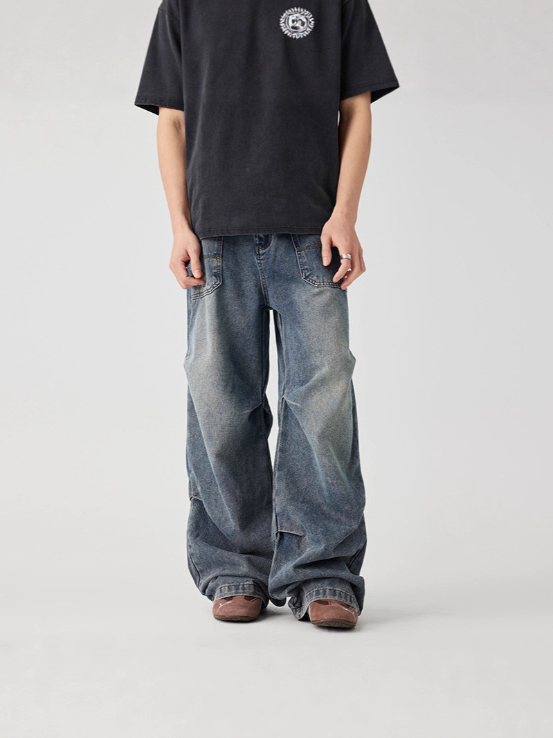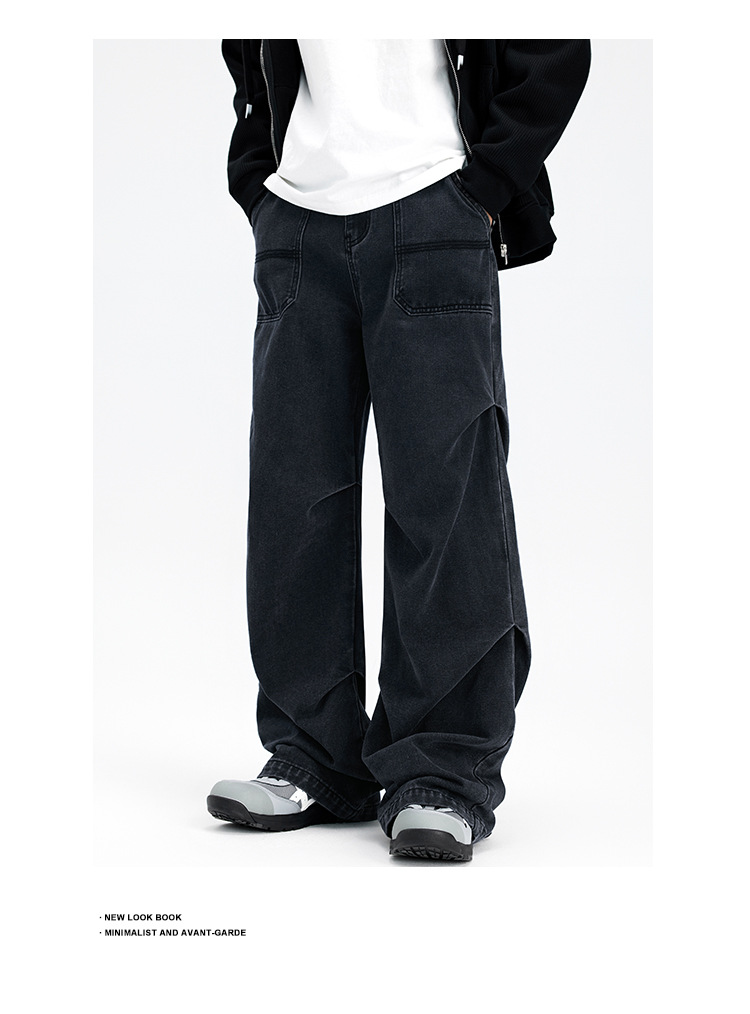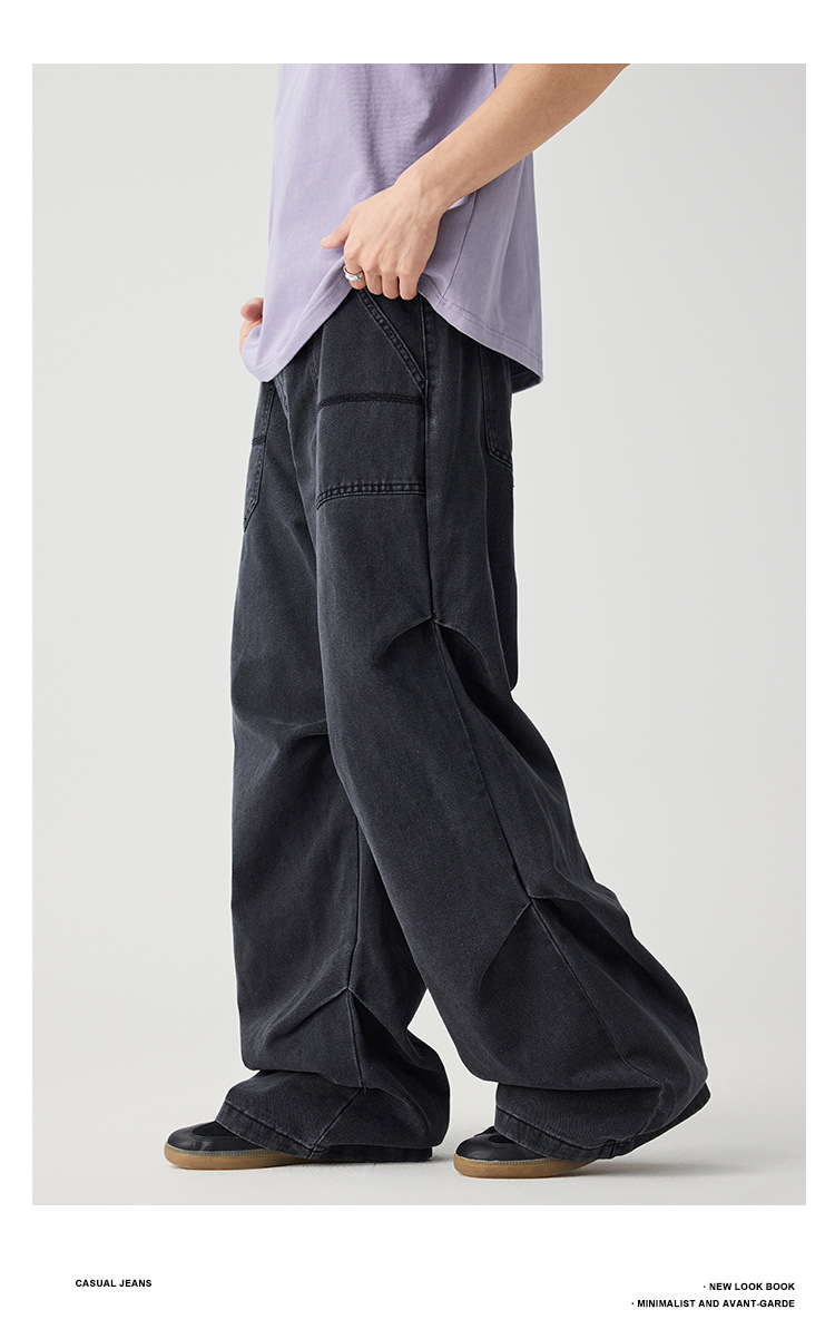 Мужские повседневные джинсы прямого кроя, расклешенные, свободные широкие брюки, классические молодежные мужские повседневные брюки