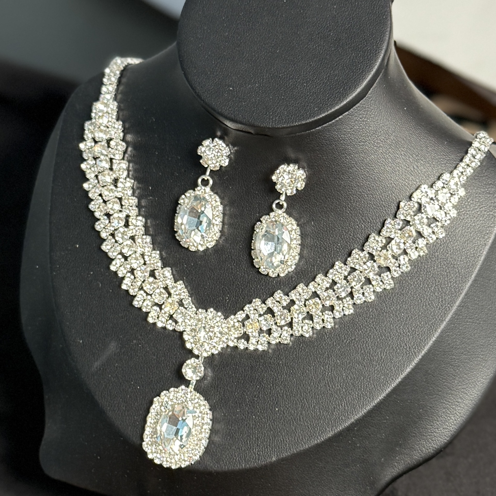 Серьги-капли с бриллиантами, колье, элегантная цепочка на ключицы, эксклюзивный ювелирный набор, винтажные серьги