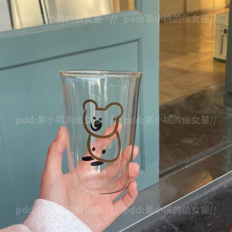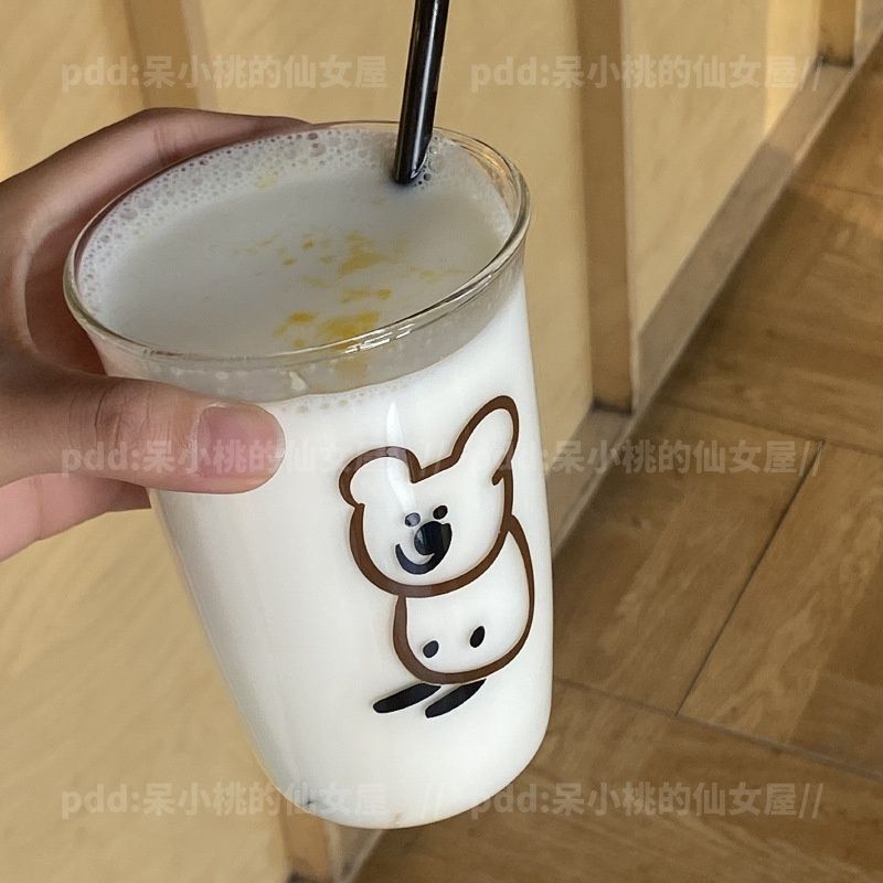 Корейская стеклянная чашка с изображением медведя коалы, устойчивая к высоким температурам, простая чашка для молока, креативная чашка для кофе