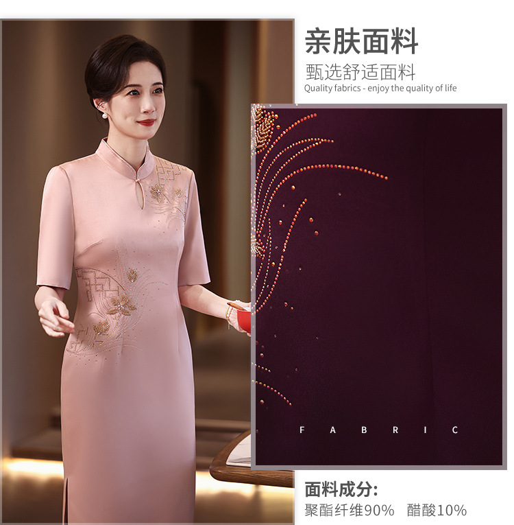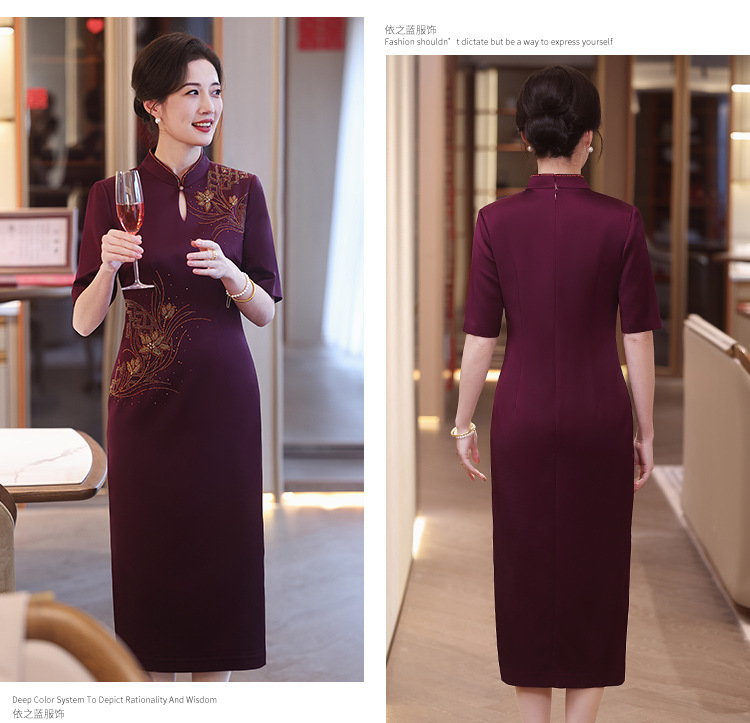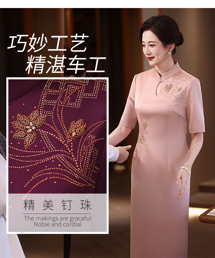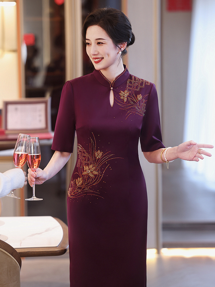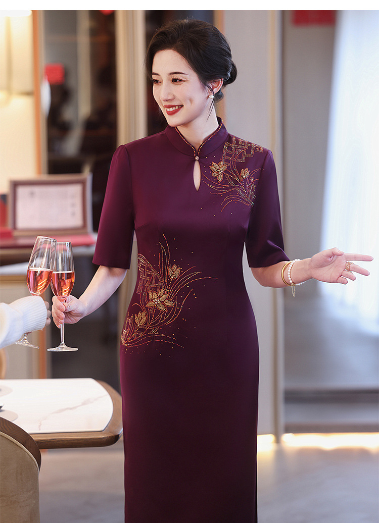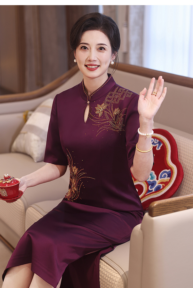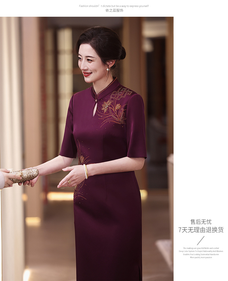 婚礼喜婆婆妈妈装婚宴礼服2024新款红色旗袍高端丝绒结婚喜服高贵 中国风优雅高端婚礼妈妈礼服旗袍2025新款金丝绒喜婆婆婚宴装长袖 2025年新款秋装酒红色端庄礼服两件套旗袍连衣裙喜婆婆婚宴装