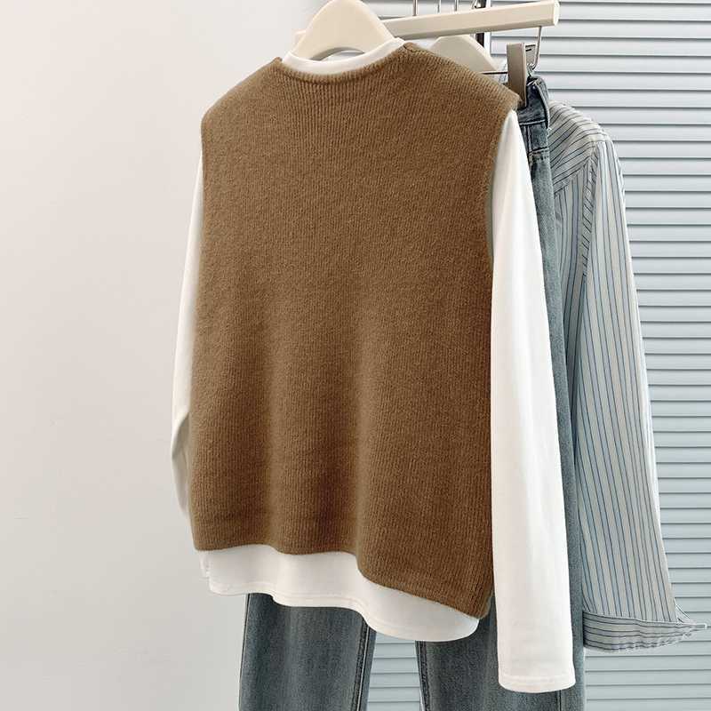 Реальный снимок готового вязаного безрукавного жилета 2025 года, новый жилет с V-образным вырезом для маленьких людей, который можно носить осенью.