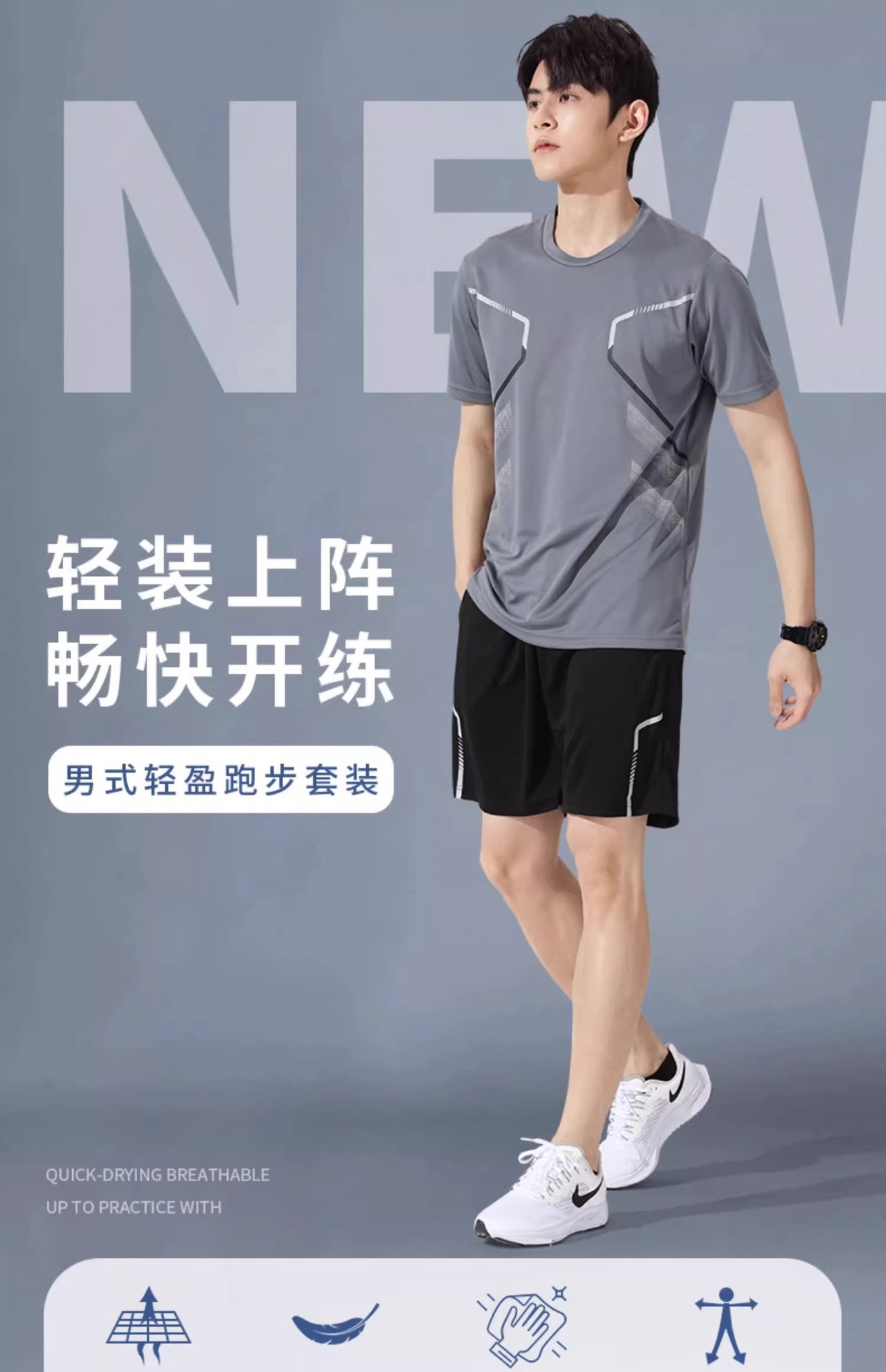 Спортивный костюм для фитнеса, мужская футболка из ледяного шелка с короткими рукавами, быстросохнущая летняя спортивная одежда, костюм для баскетбола, утренние шорты для бега, тренировки