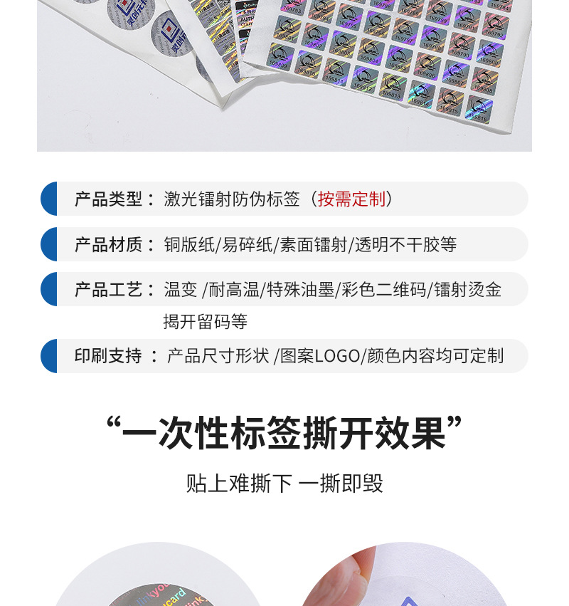 Лазерная защитная этикетка от подделок, недействительна при разрыве, хрупкая бумажная этикетка с QR-кодом для защиты от подделок, лазерная этикетка с защитным кодом