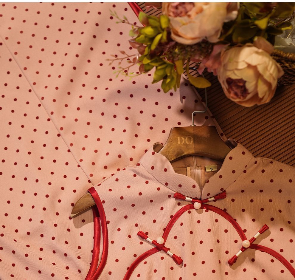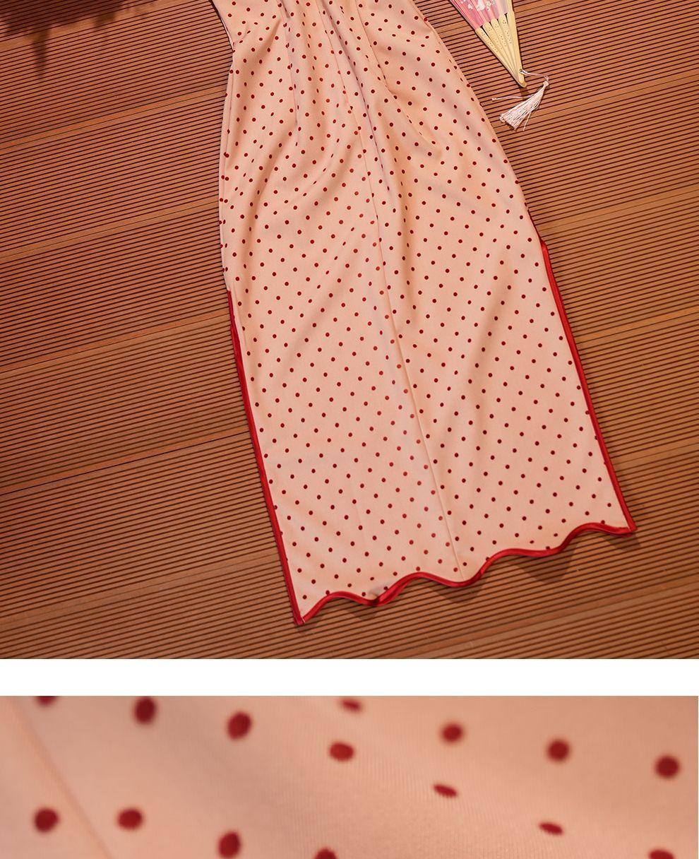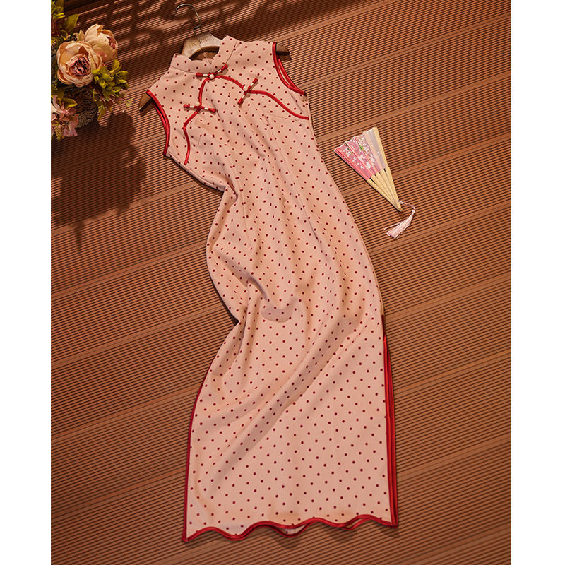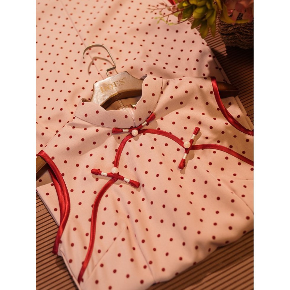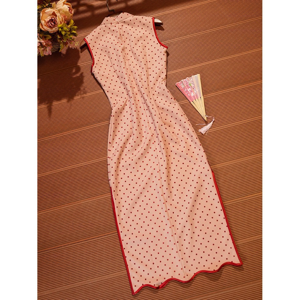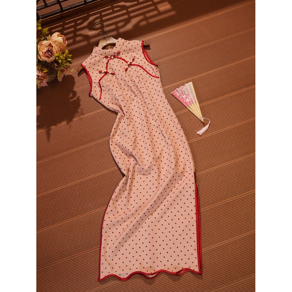Красный волновой чонсам новый китайский стиль без рукавов