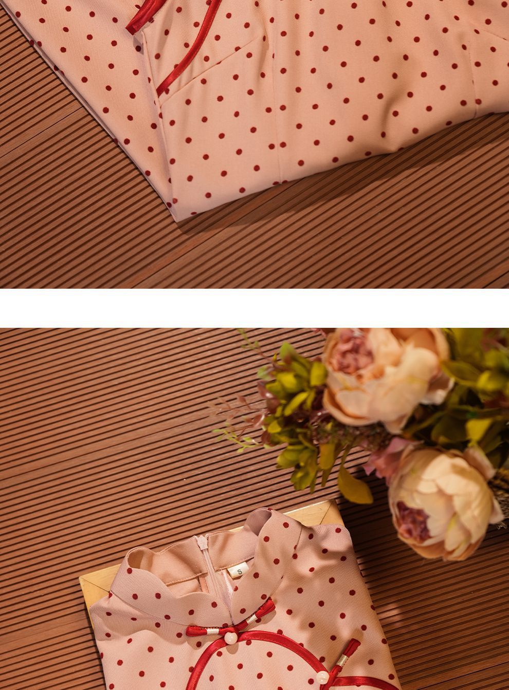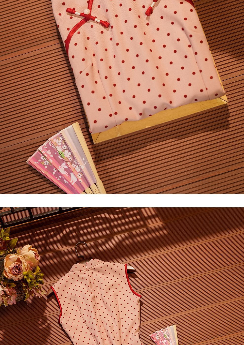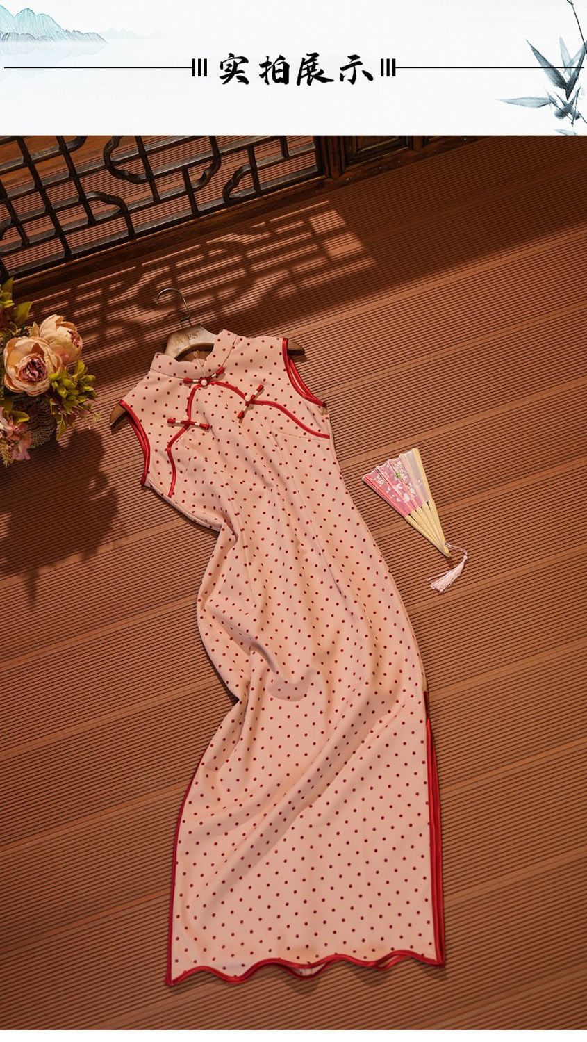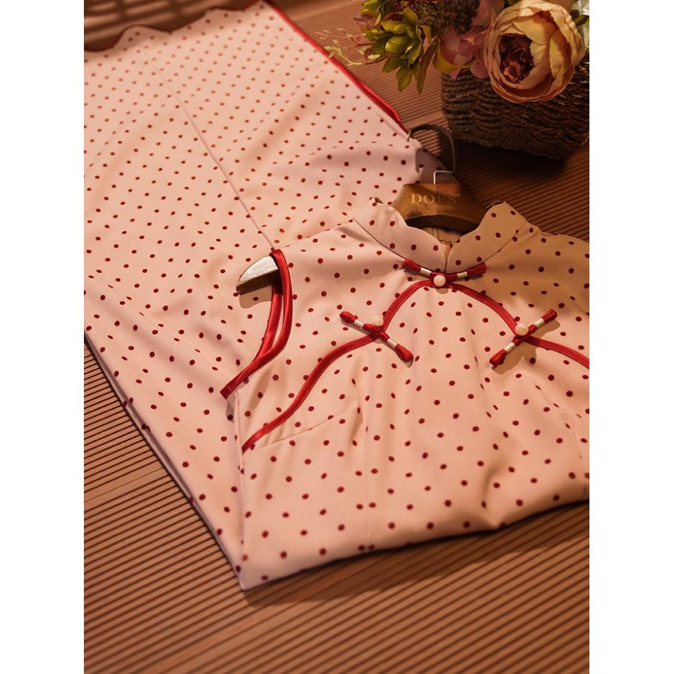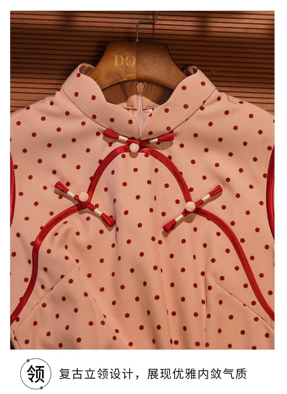 Красный волновой чонсам новый китайский стиль без рукавов