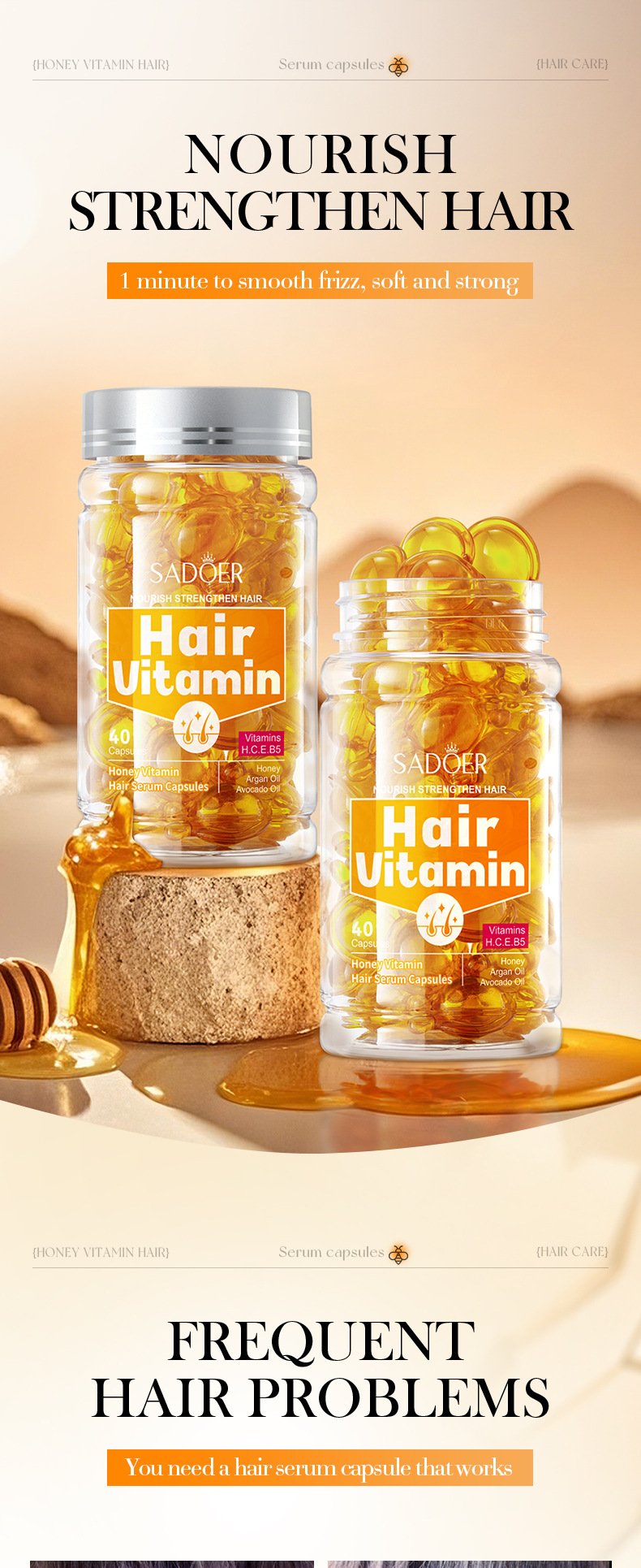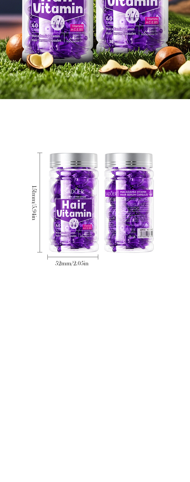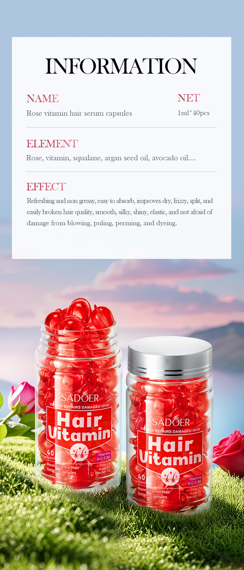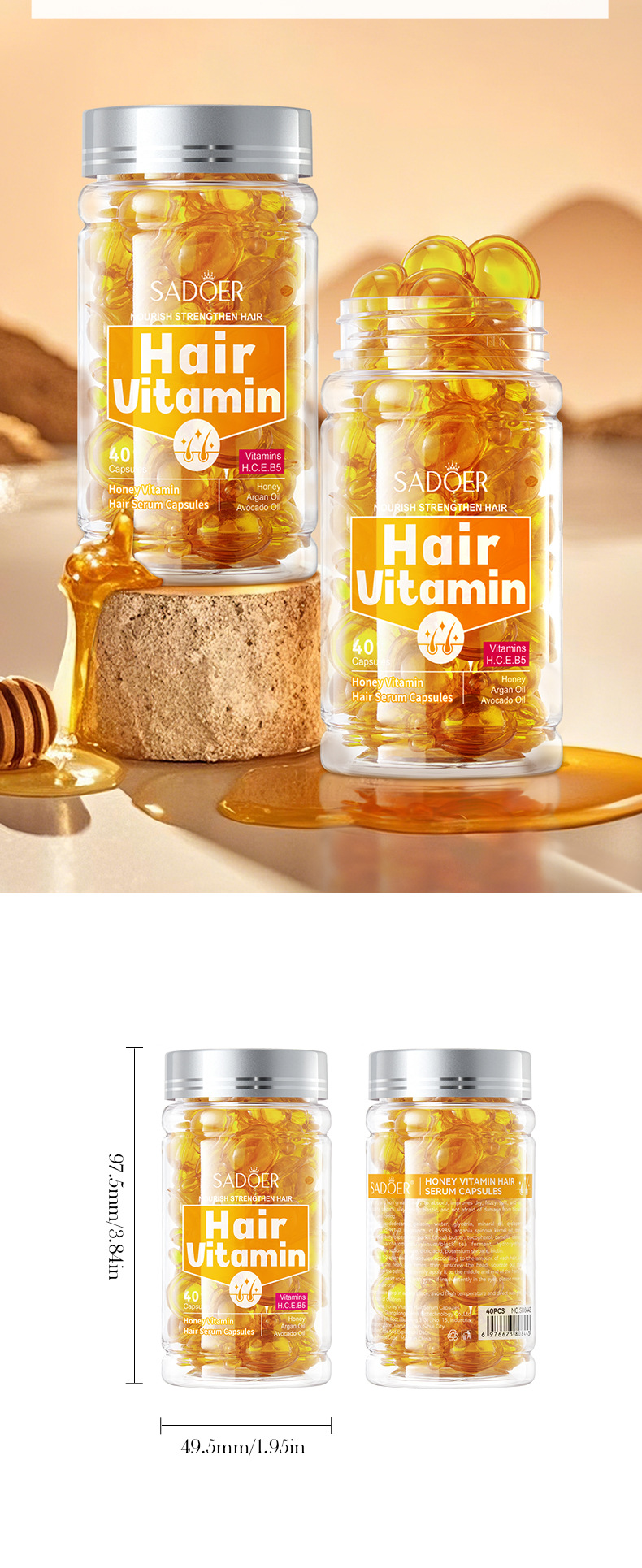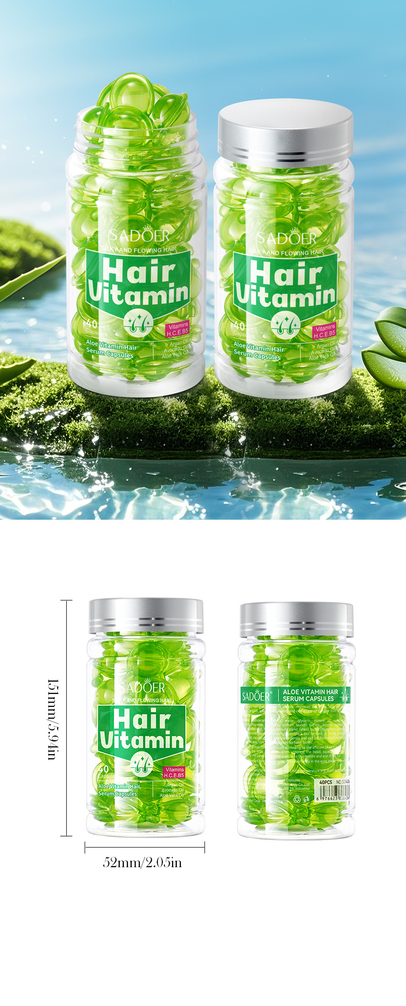 Витаминные капсулы для ухода за волосами, изготовленные пчелами, 1 мл * 40 шт. [Только для внешнеторгового экспорта, продажи на внутреннем рынке запрещены]; Капсулы для ухода за волосами Shili Vitamin, 1 мл * 40 шт. [Только для внешнеторгового экспорта, продажи на внутреннем рынке запрещены]; Капсулы для ухода за волосами с витаминами макадамии, 1 мл * 40 шт. [Только для внешнеторгового экспорта, продажи на внутреннем рынке запрещены]; Капсулы для ухода за волосами с витамином Алоэ Вера, 1 мл * 40 шт. [Только для внешнеторгового экспорта, продажи на внутреннем рынке запрещены]; Капсулы эссенции для ухода за волосами с витамином розы (версия на иностранном языке) 1 мл * 40 шт.; САДОЭР капсулы с эссенцией для ухода за волосами с маслом семян жожоба и витаминами (версия на иностранном языке) 1 мл * 40 шт.