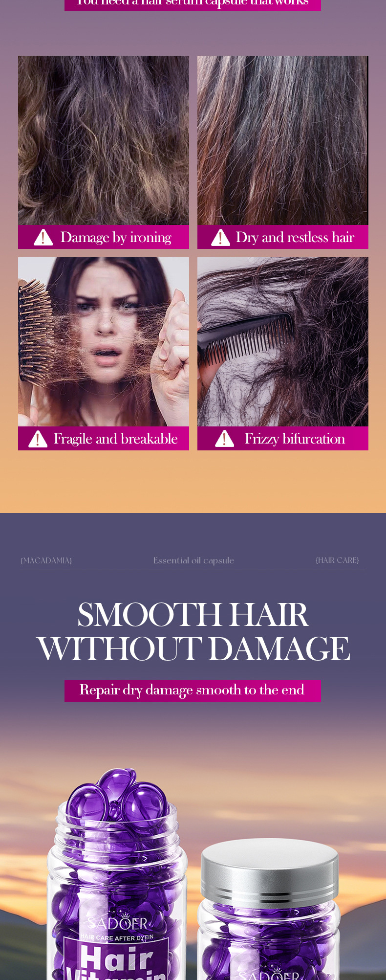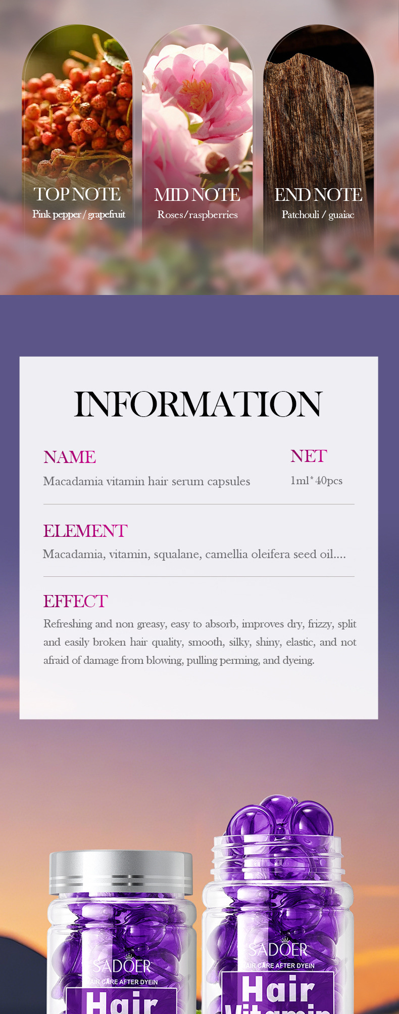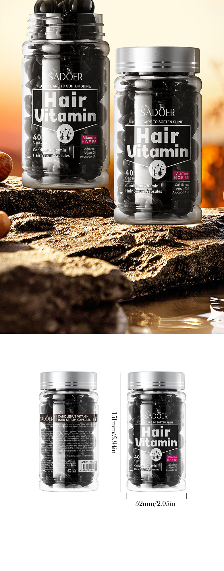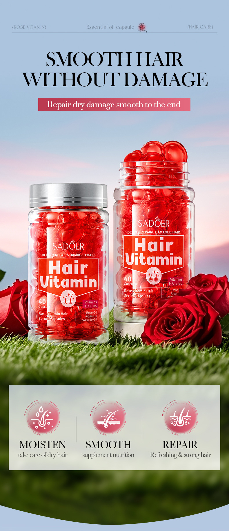 Витаминные капсулы для ухода за волосами, изготовленные пчелами, 1 мл * 40 шт. [Только для внешнеторгового экспорта, продажи на внутреннем рынке запрещены]; Капсулы для ухода за волосами Shili Vitamin, 1 мл * 40 шт. [Только для внешнеторгового экспорта, продажи на внутреннем рынке запрещены]; Капсулы для ухода за волосами с витаминами макадамии, 1 мл * 40 шт. [Только для внешнеторгового экспорта, продажи на внутреннем рынке запрещены]; Капсулы для ухода за волосами с витамином Алоэ Вера, 1 мл * 40 шт. [Только для внешнеторгового экспорта, продажи на внутреннем рынке запрещены]; Капсулы эссенции для ухода за волосами с витамином розы (версия на иностранном языке) 1 мл * 40 шт.; САДОЭР капсулы с эссенцией для ухода за волосами с маслом семян жожоба и витаминами (версия на иностранном языке) 1 мл * 40 шт.