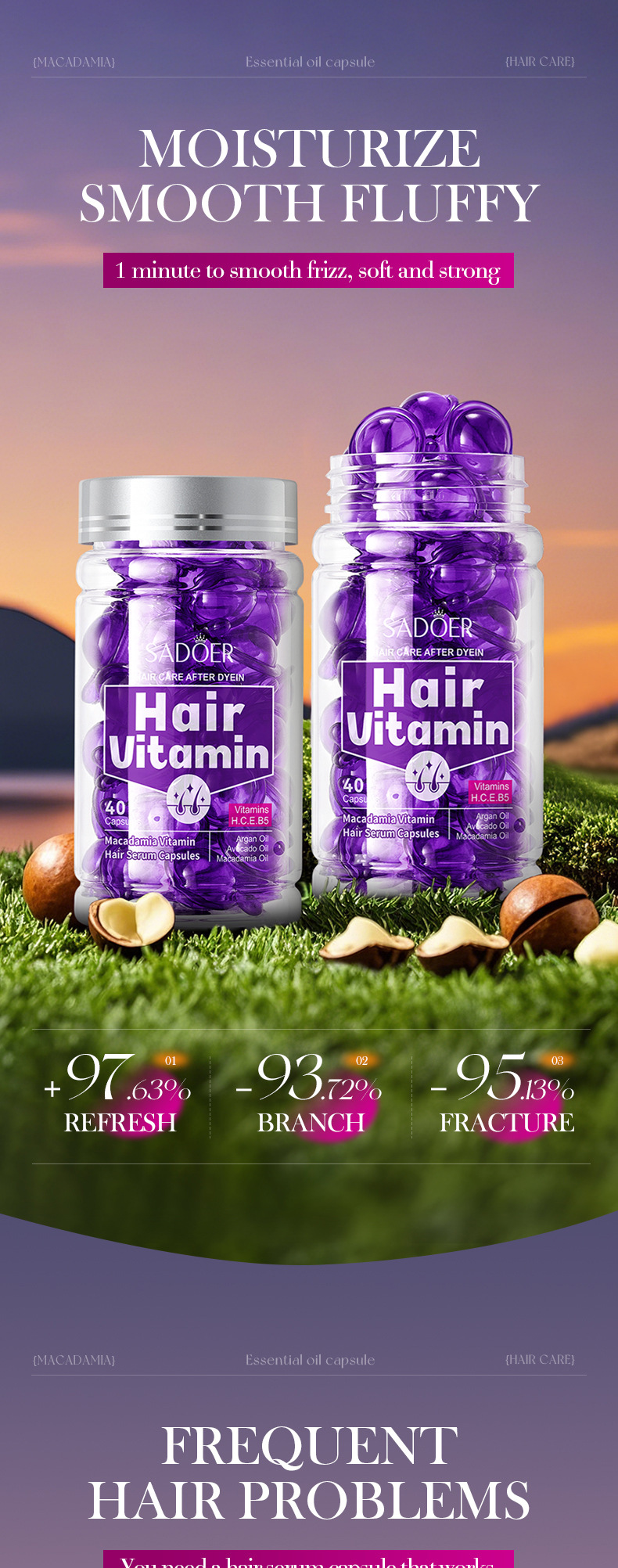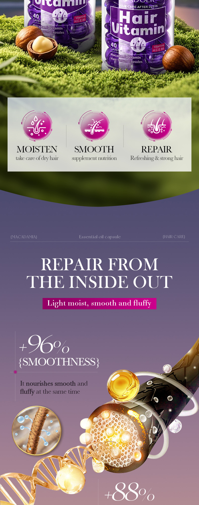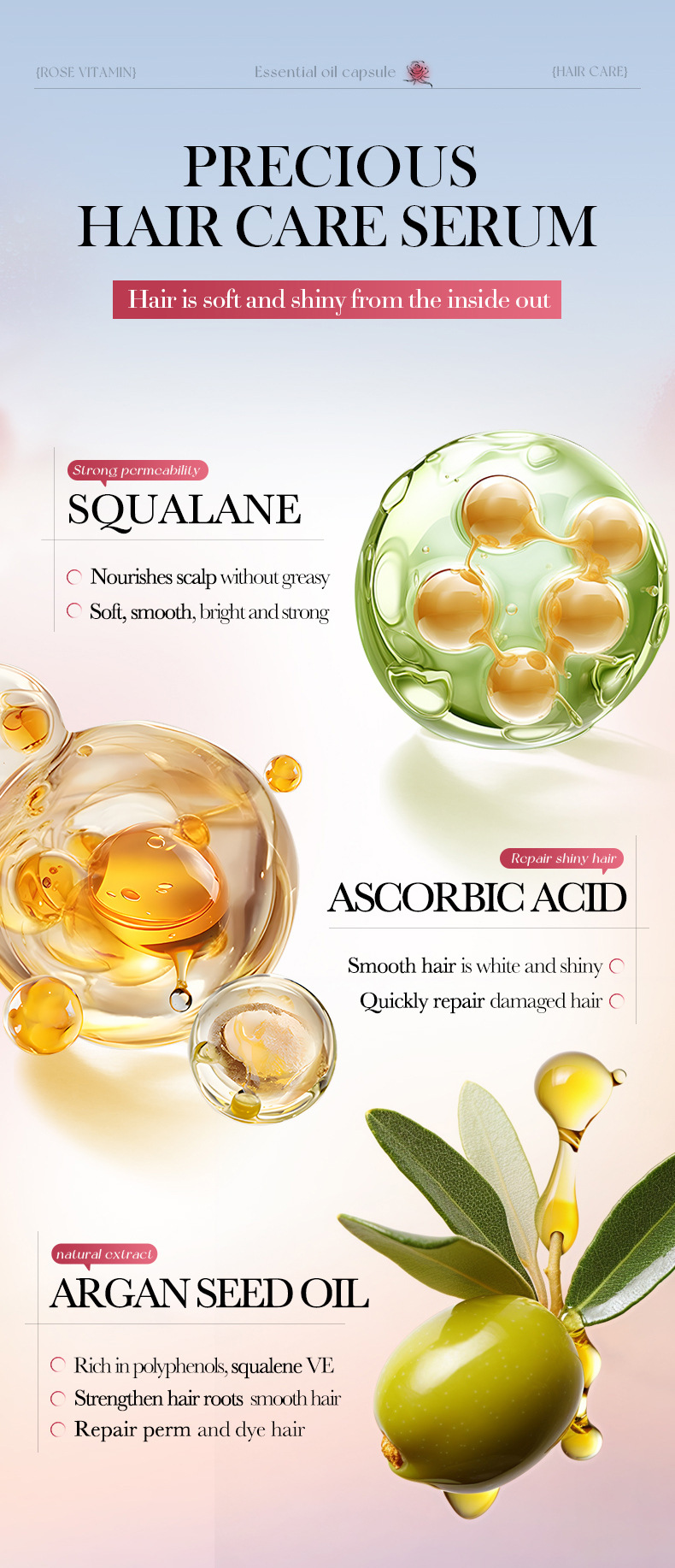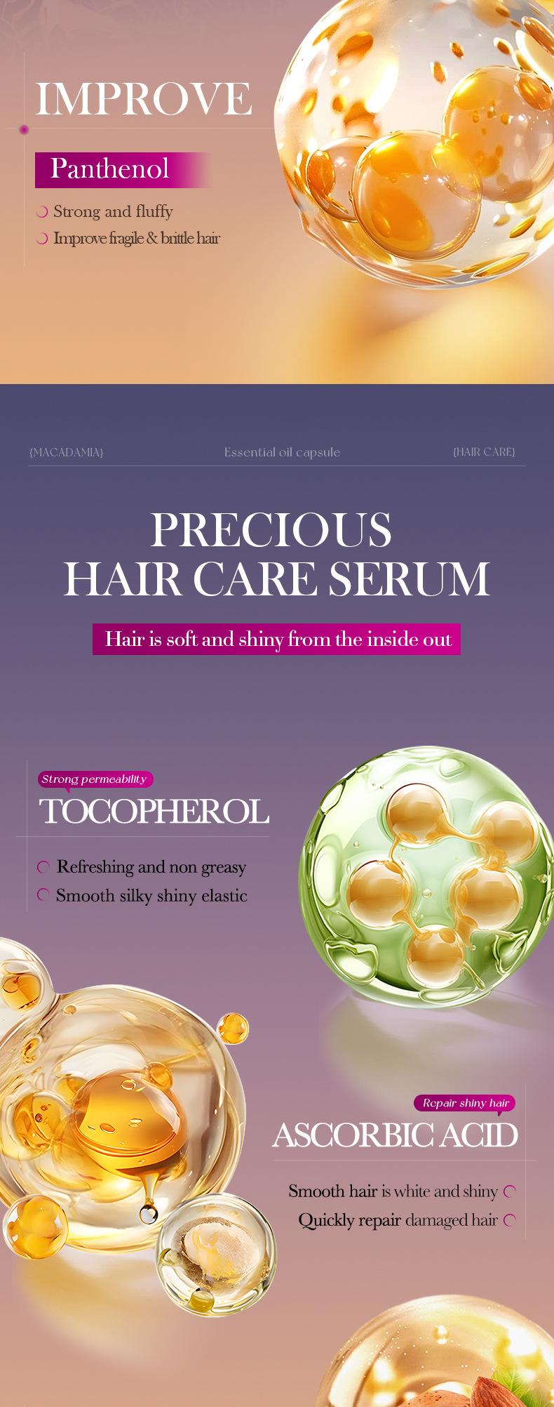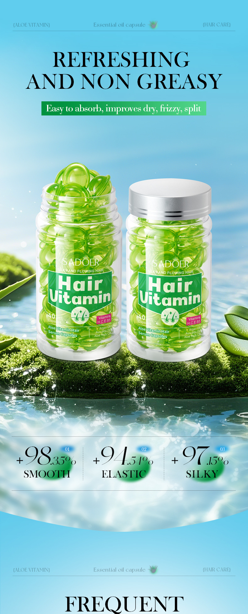 Витаминные капсулы для ухода за волосами, изготовленные пчелами, 1 мл * 40 шт. [Только для внешнеторгового экспорта, продажи на внутреннем рынке запрещены]; Капсулы для ухода за волосами Shili Vitamin, 1 мл * 40 шт. [Только для внешнеторгового экспорта, продажи на внутреннем рынке запрещены]; Капсулы для ухода за волосами с витаминами макадамии, 1 мл * 40 шт. [Только для внешнеторгового экспорта, продажи на внутреннем рынке запрещены]; Капсулы для ухода за волосами с витамином Алоэ Вера, 1 мл * 40 шт. [Только для внешнеторгового экспорта, продажи на внутреннем рынке запрещены]; Капсулы эссенции для ухода за волосами с витамином розы (версия на иностранном языке) 1 мл * 40 шт.; САДОЭР капсулы с эссенцией для ухода за волосами с маслом семян жожоба и витаминами (версия на иностранном языке) 1 мл * 40 шт.