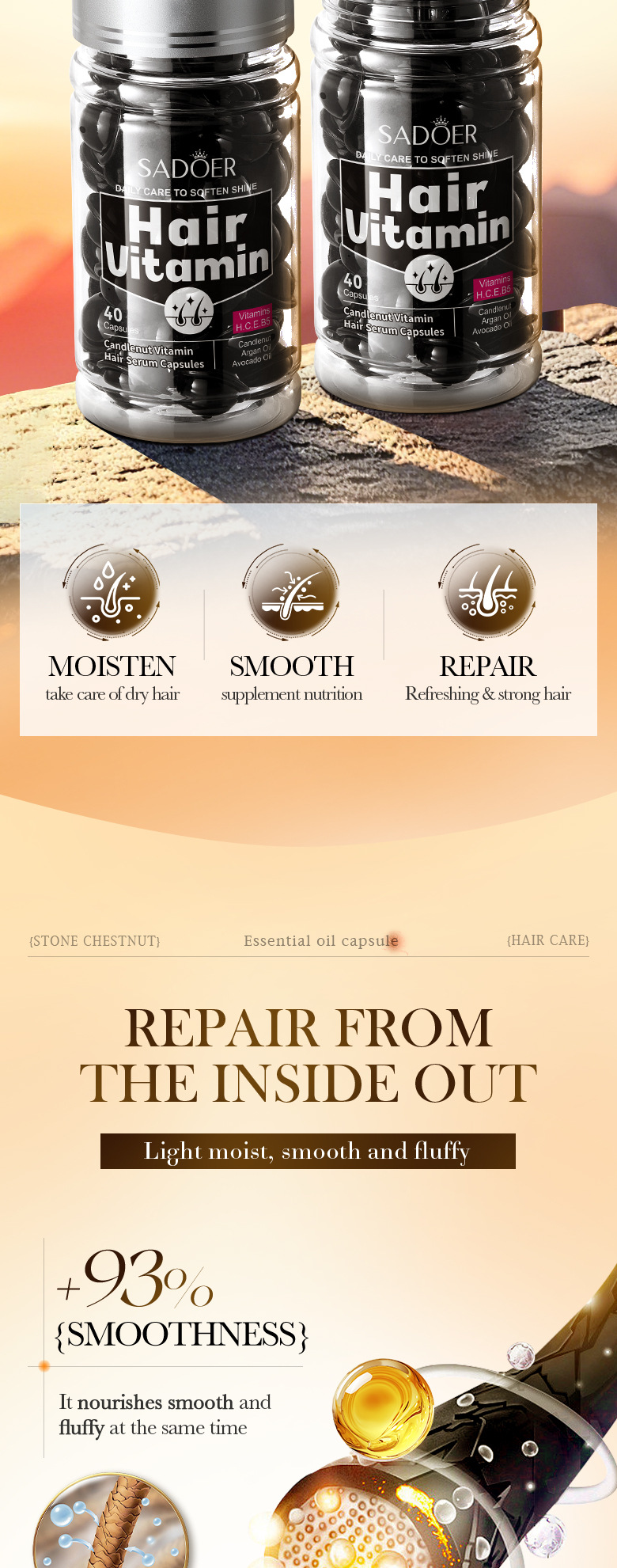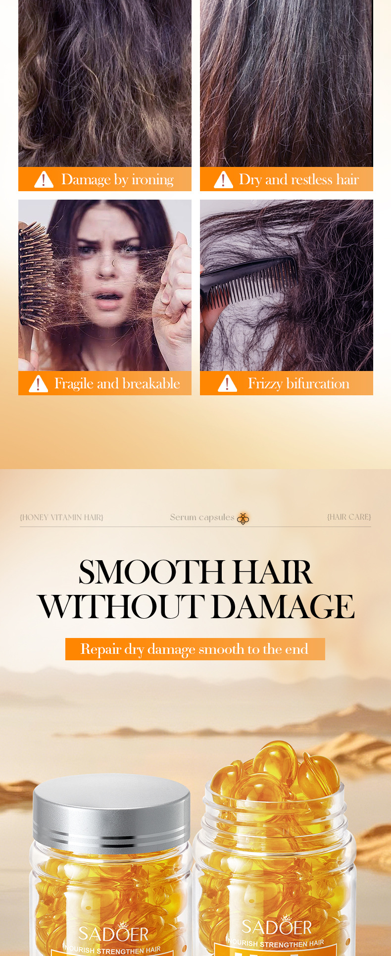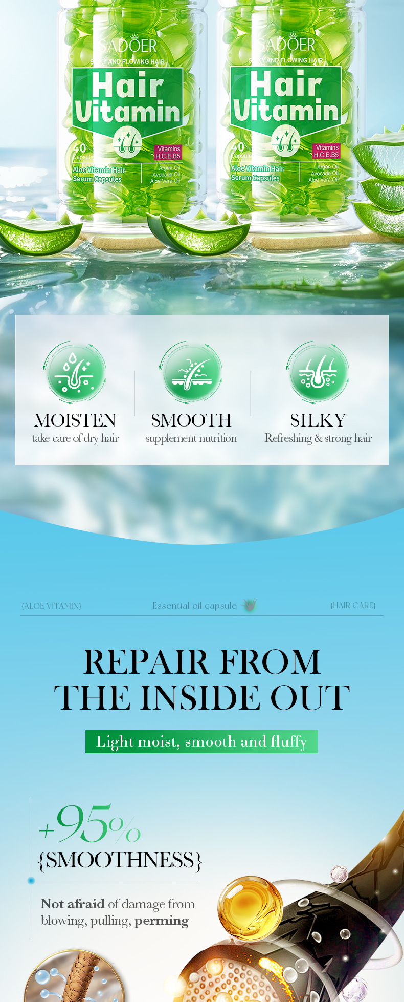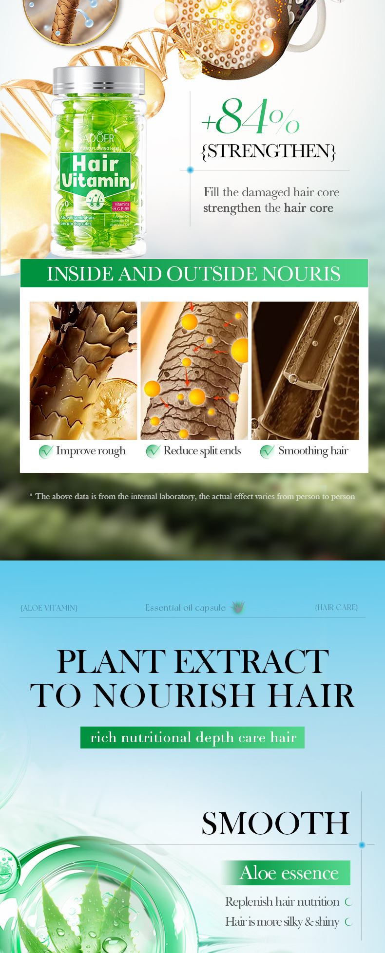 Полный английский SADOER пчелиный крем Витамин для ухода за волосами Капсулы для увлажнения волос кондиционер для трансграничной внешней торговли оптом