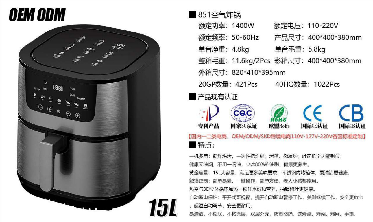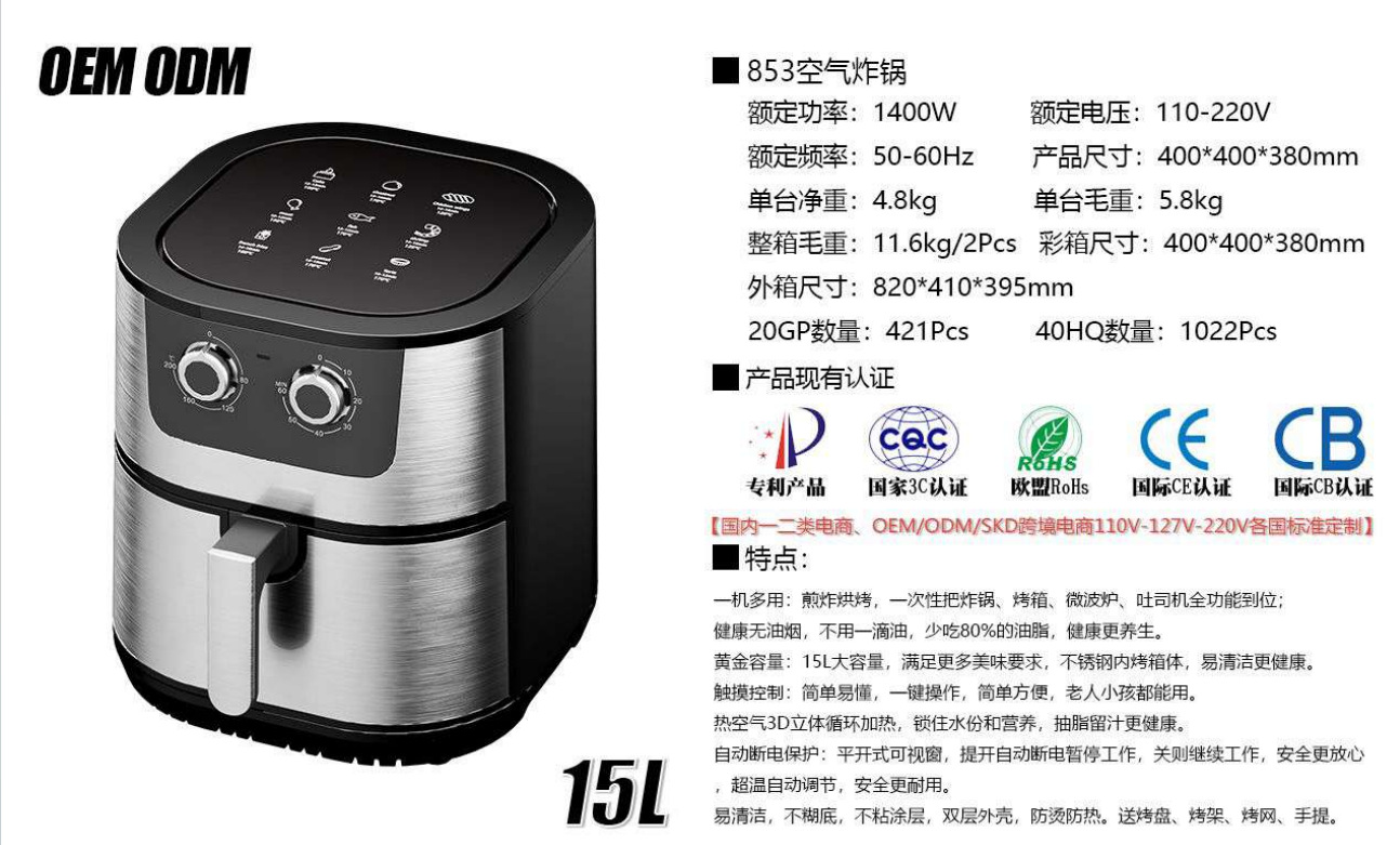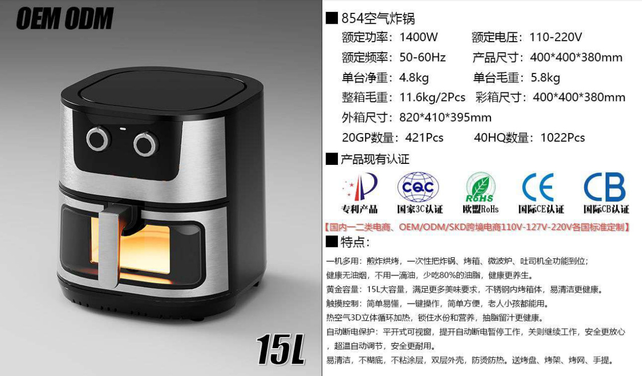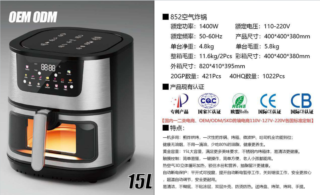 Трансграничная 15L сенсорная печь с алюминиевым антипригарным покрытием для сковороды Визуальная электрическая печь для дома внешней торговли 110V воздушная фритюрница