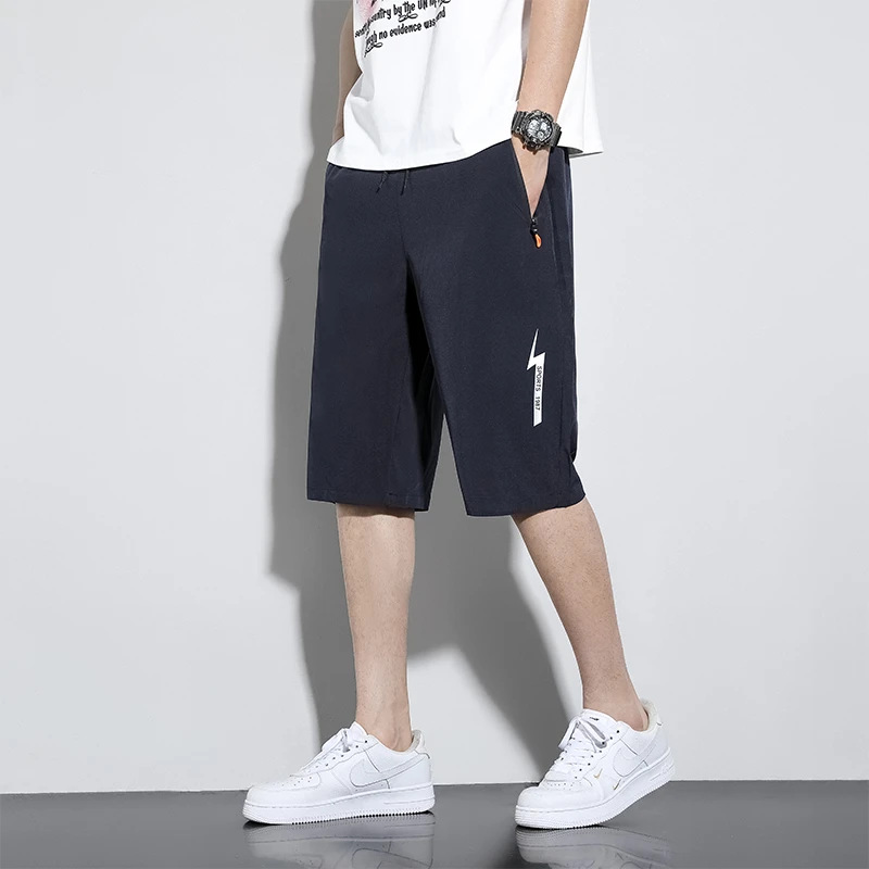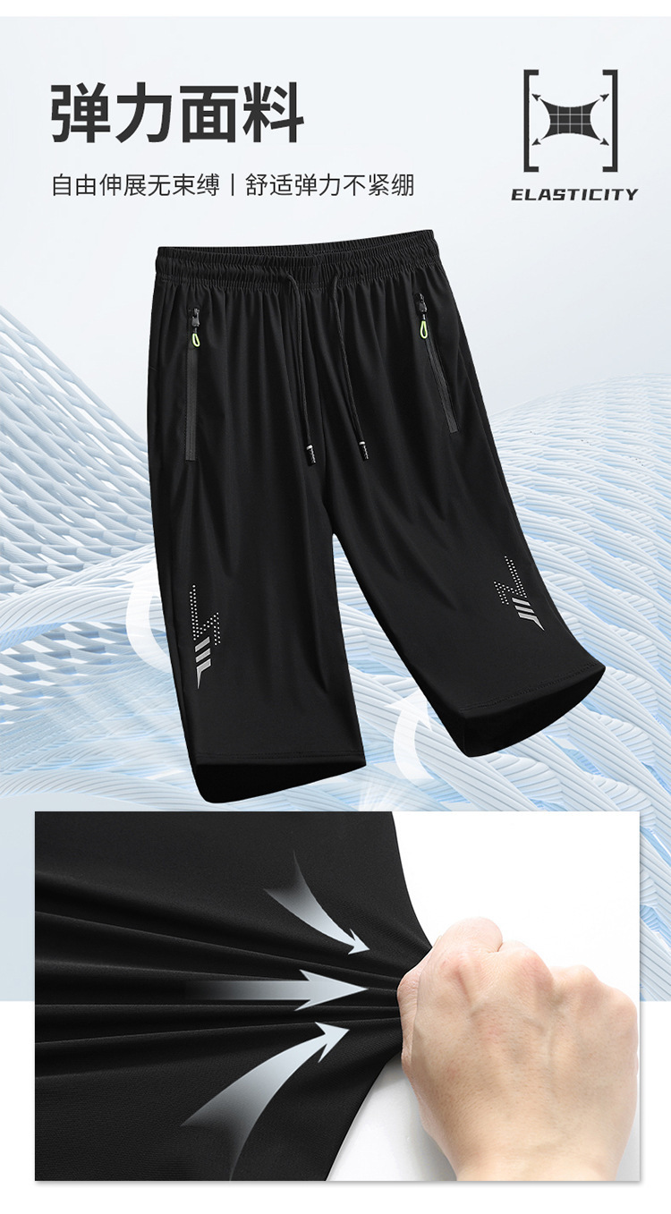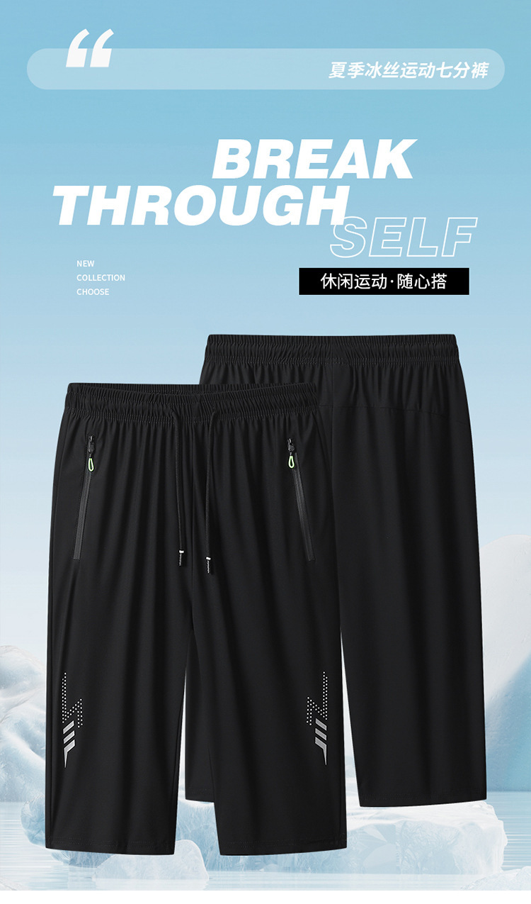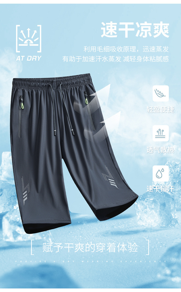 Трансграничные летние ледяные шелковые укороченные брюки Мужские шорты новый модный повседневные спортивные брюки свободные быстрые брюки средние брюки