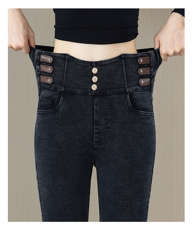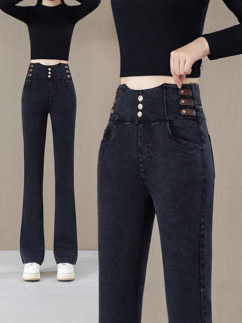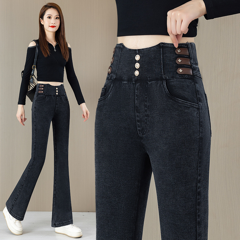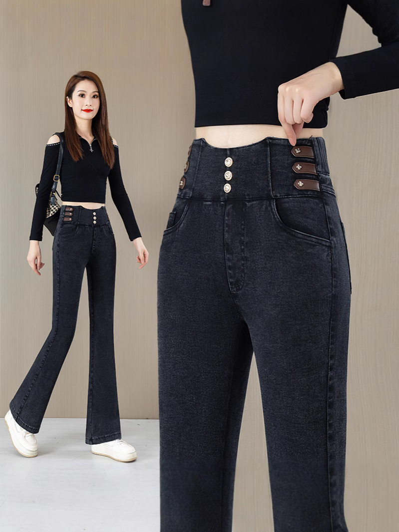 Высокая талия микро-джинсы для женщин осень-зима 2025 новый большой размер дикие эластичные тонкие повседневные трусики