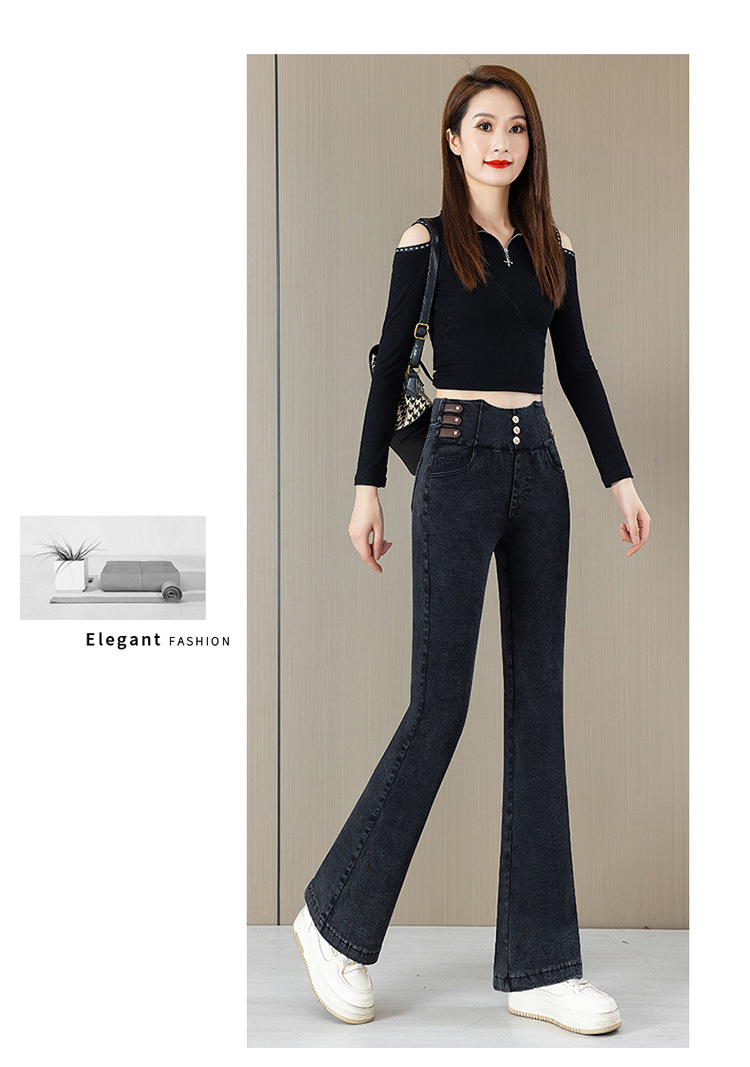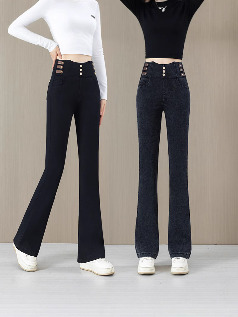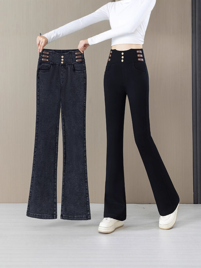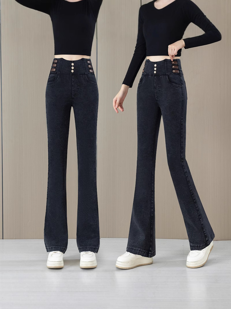 Высокая талия микро-джинсы для женщин осень-зима 2025 новый большой размер дикие эластичные тонкие повседневные трусики