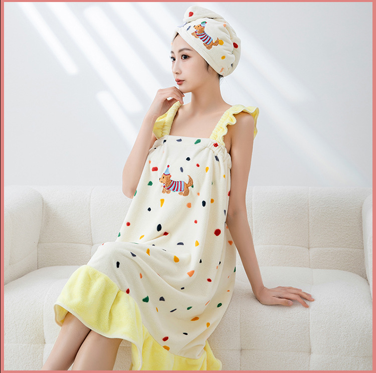 Блоночная такса полотенце полотенце сухие волосы шапка из трех частей домашнего впитывания воды коралловый бархат полотенце мягкая подтяжка юбка для ванной