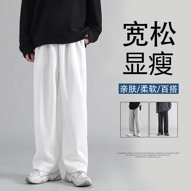 1 шт., Прямая доставка] белые брюки, мужские драпированные спортивные штаны в американском стиле, свободные повседневные брюки большого размера с эластичной резинкой на талии, прямые брюки