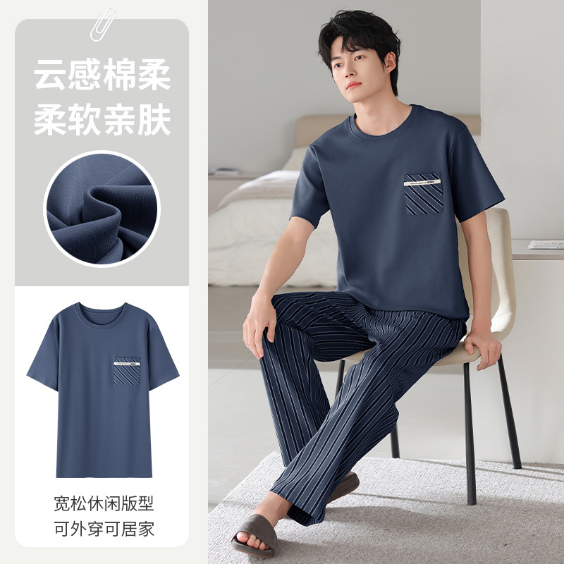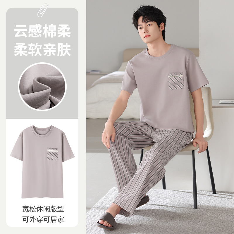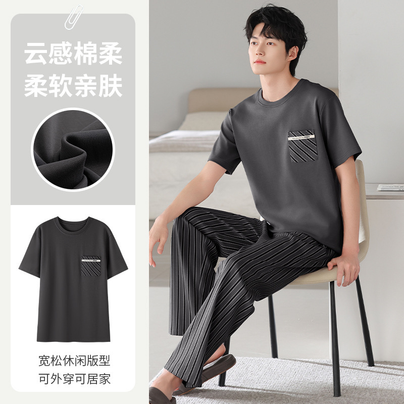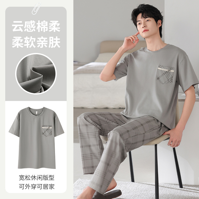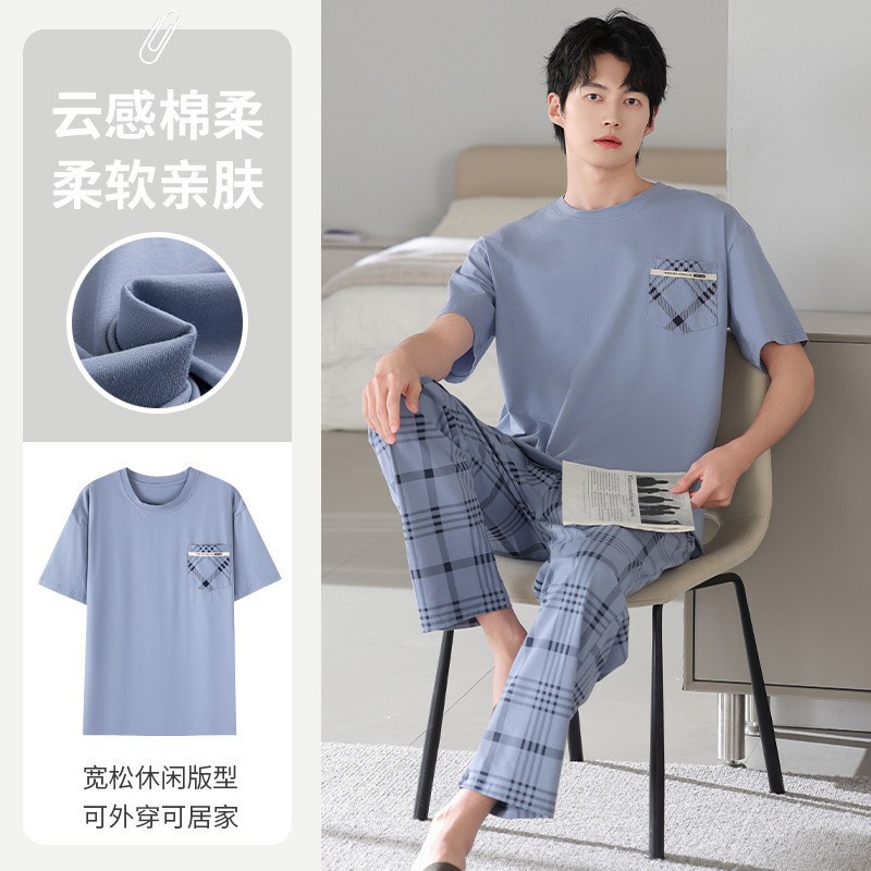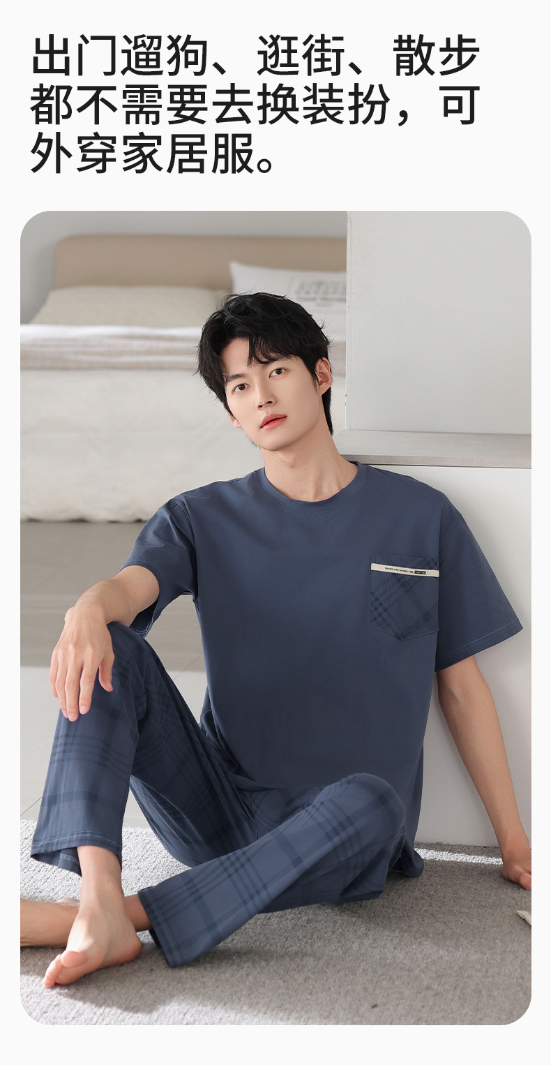Хлопковые эластичные пижамы, мужские летние пуловеры с круглым вырезом, брюки с короткими рукавами, простые повседневные свободные комплекты одежды, которые можно носить вне дома