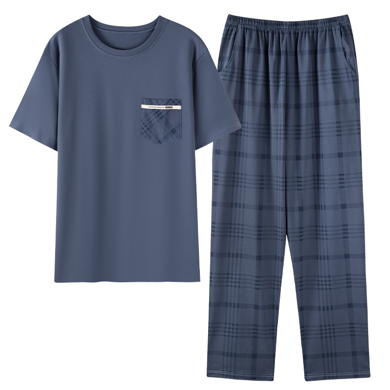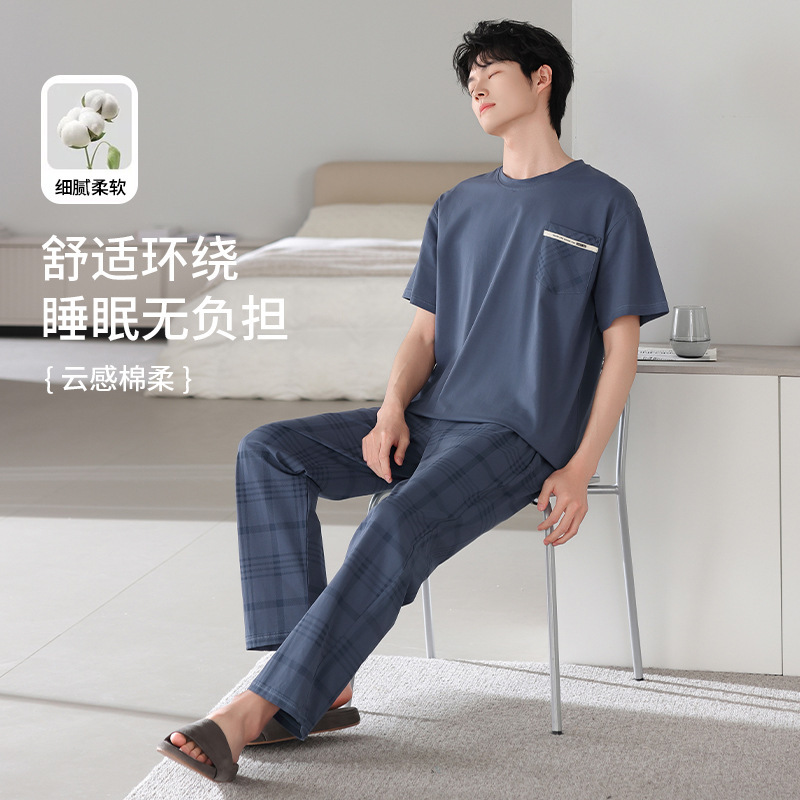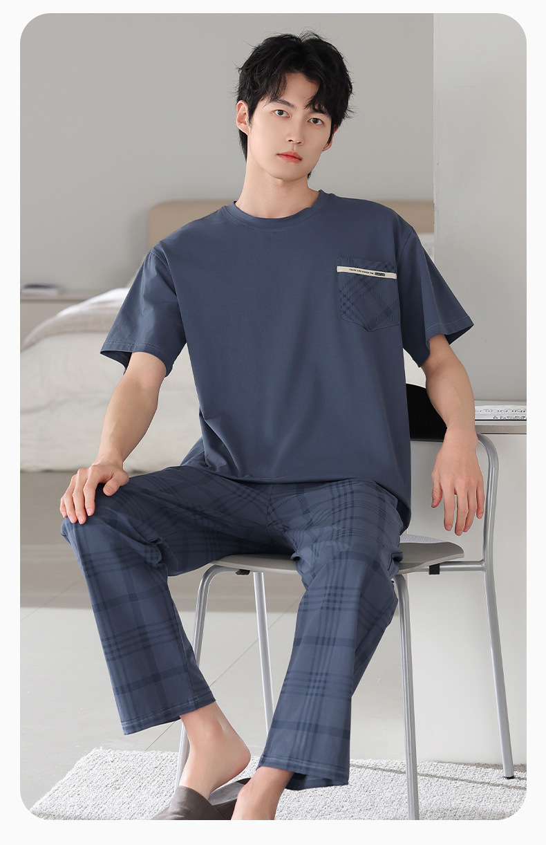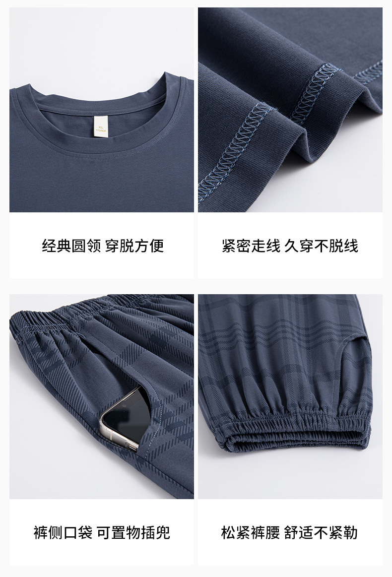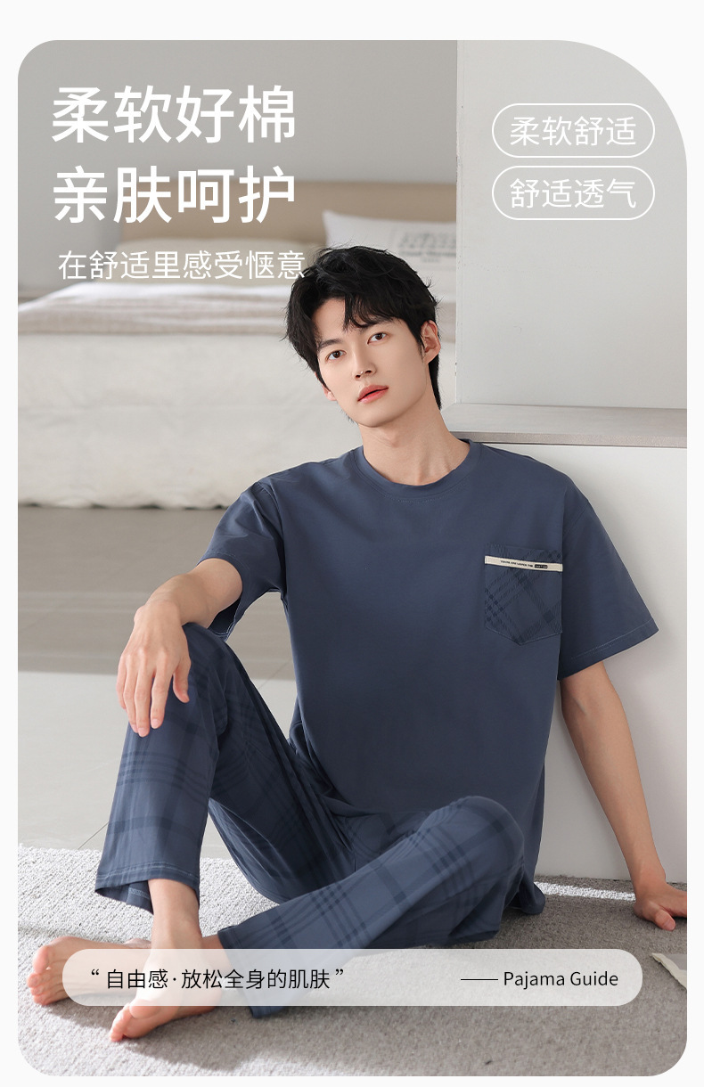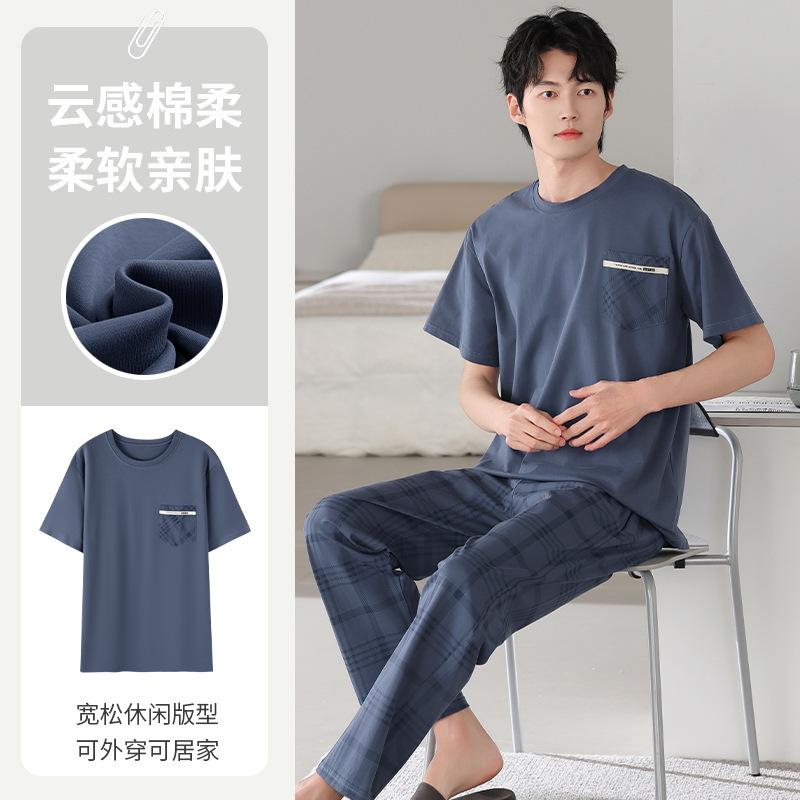 Хлопковые эластичные пижамы, мужские летние пуловеры с круглым вырезом, брюки с короткими рукавами, простые повседневные свободные комплекты одежды, которые можно носить вне дома