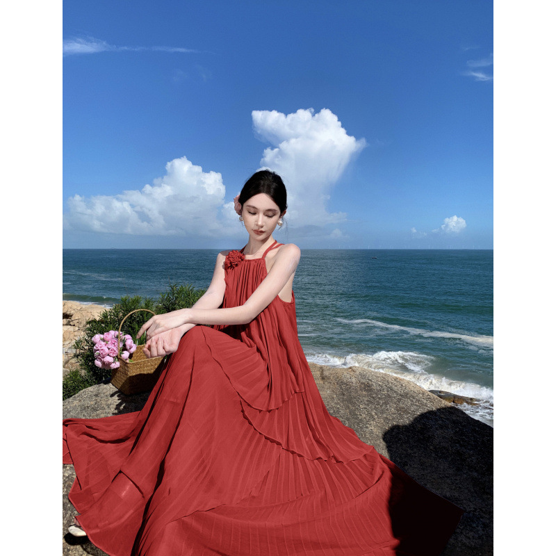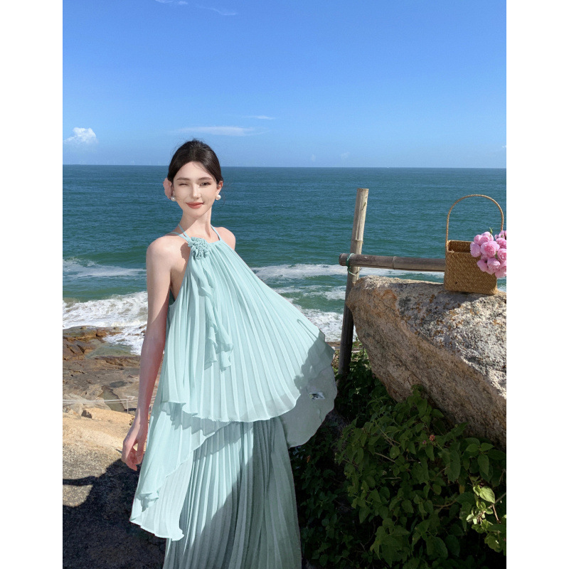 Морская праздничная длинная юбка французская супер фея подтяжка топ плиссированная юбка платье из двух частей
