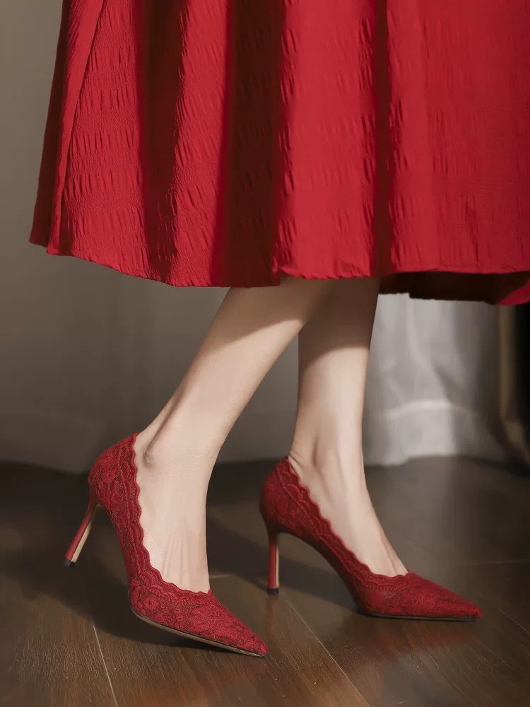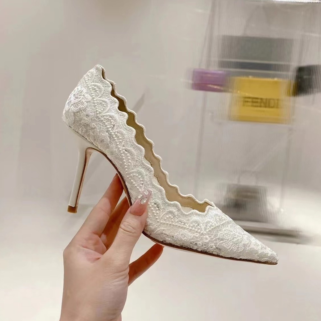 Белые свадебные туфли на высоком каблуке для женщин 2025 весна новые кружевные вышитые элитные китайские свадебные туфли Xiuhe для женщин