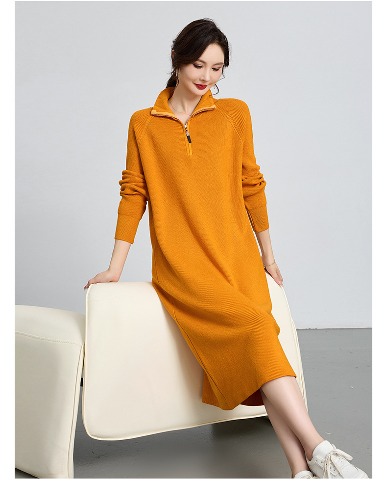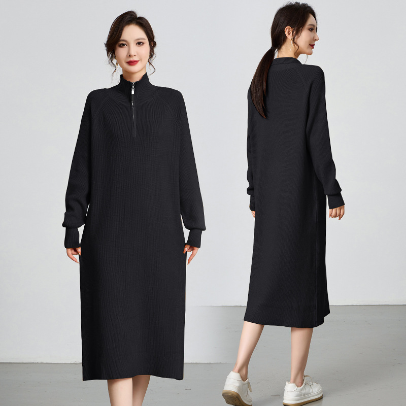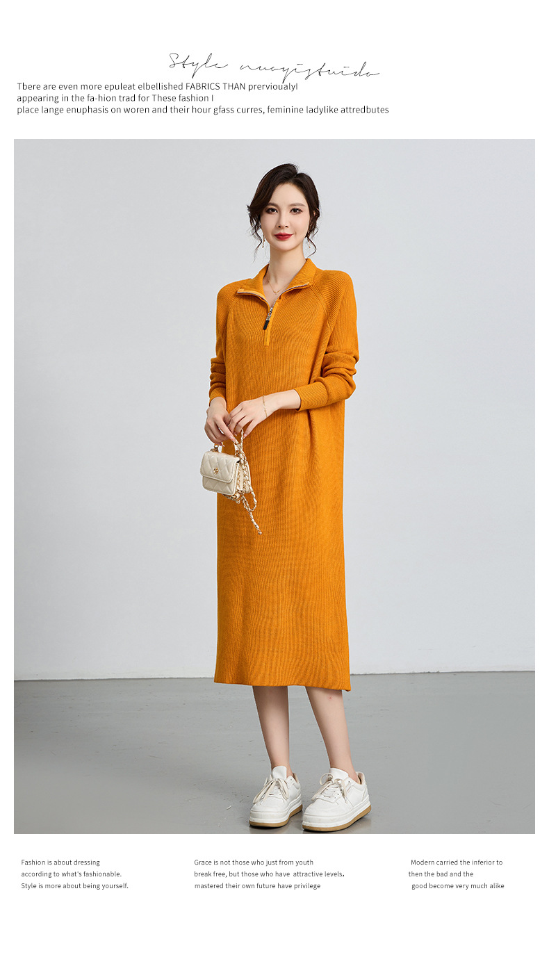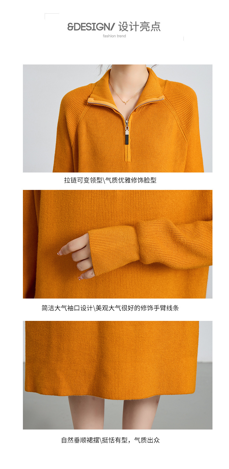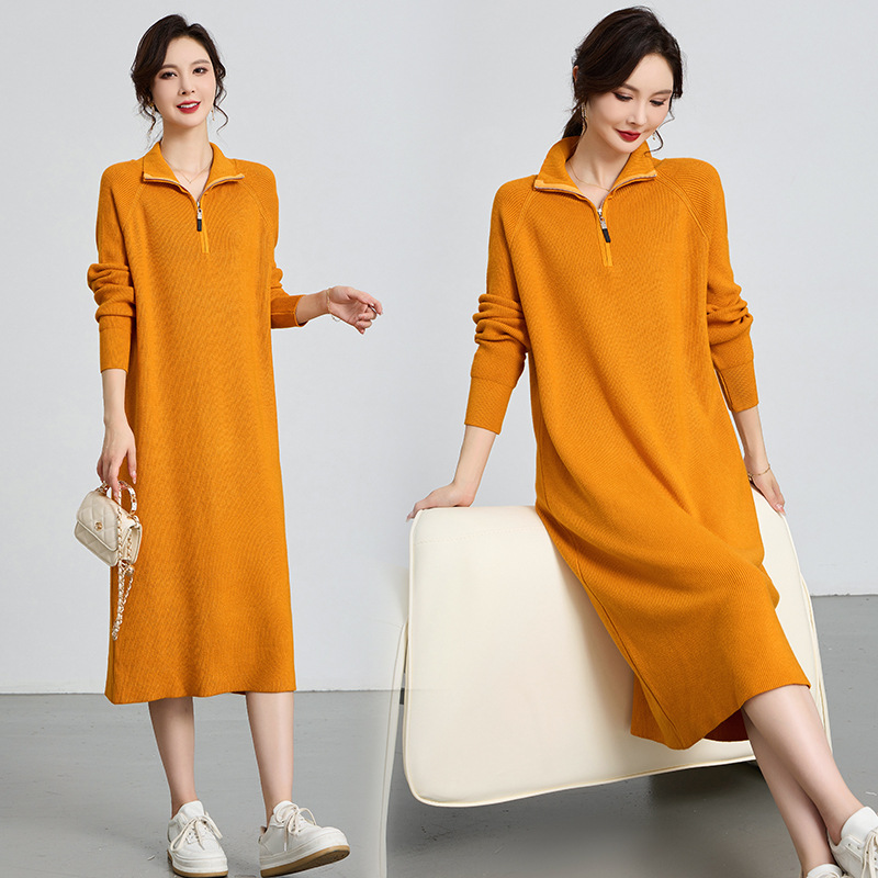 Женское свободное платье в стиле ленивого шика 2024, новинка осени и зимы, свитер с лацканами и молнией, длинное свободное пальто и юбка