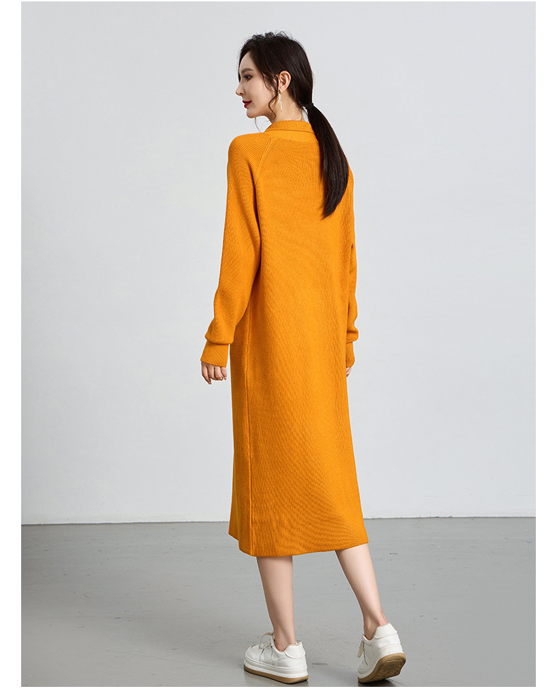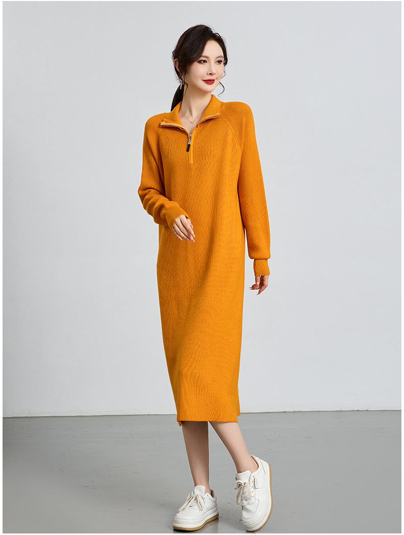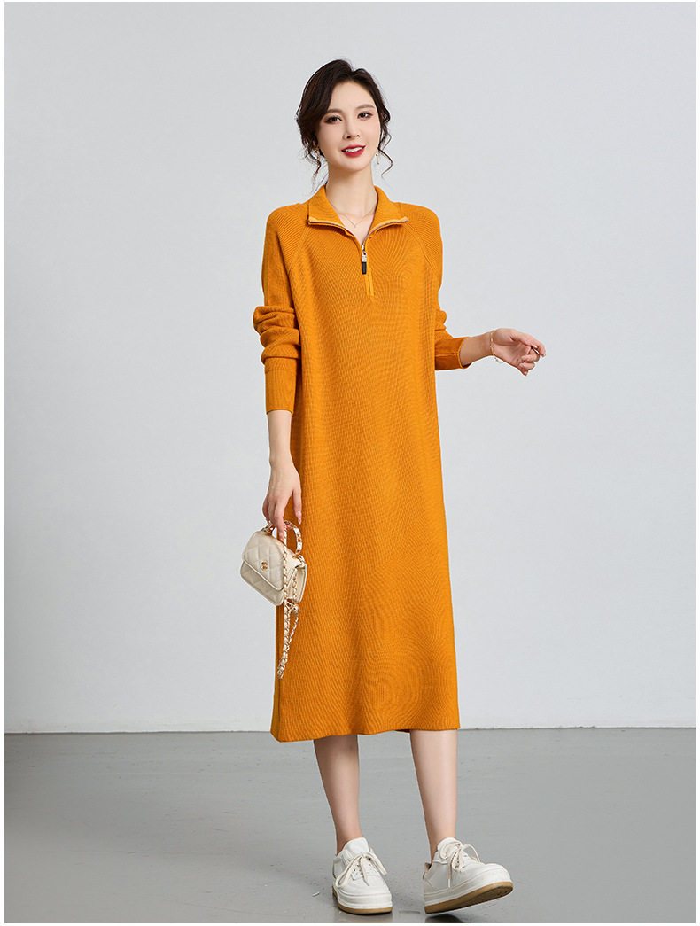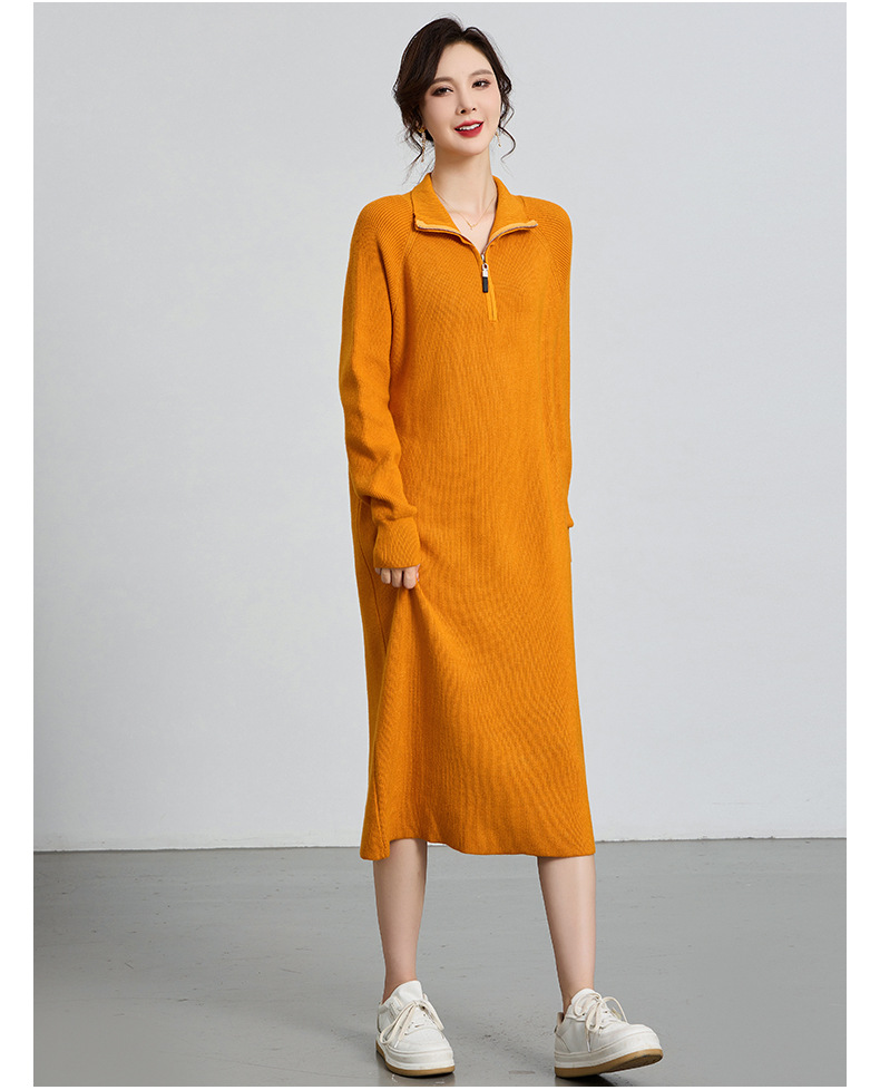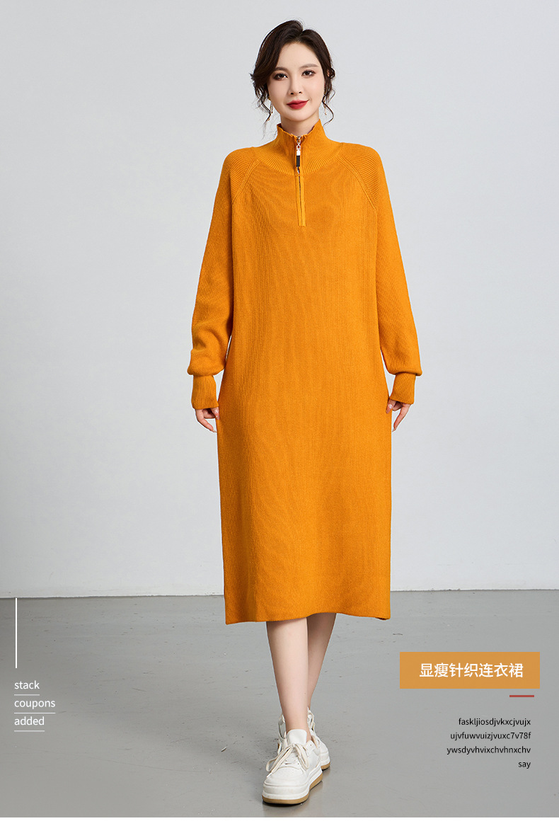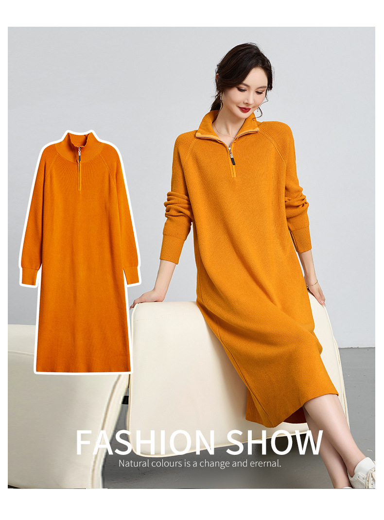 Женское свободное платье в стиле ленивого шика 2024, новинка осени и зимы, свитер с лацканами и молнией, длинное свободное пальто и юбка