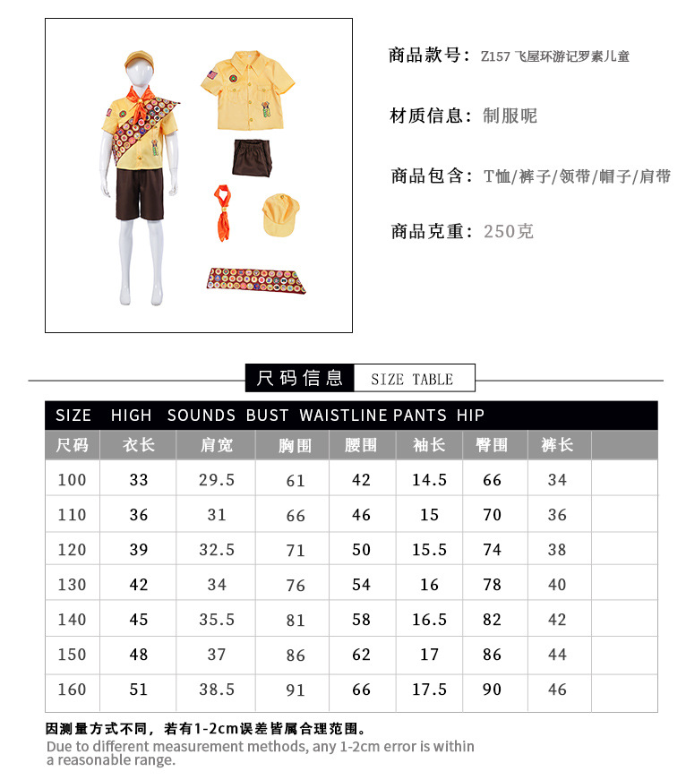 Летающий дом вокруг путешествия cos костюм маленький мальчик Рассел маленький исследователь аниме фильм ролевой костюм cos костюм Рассел