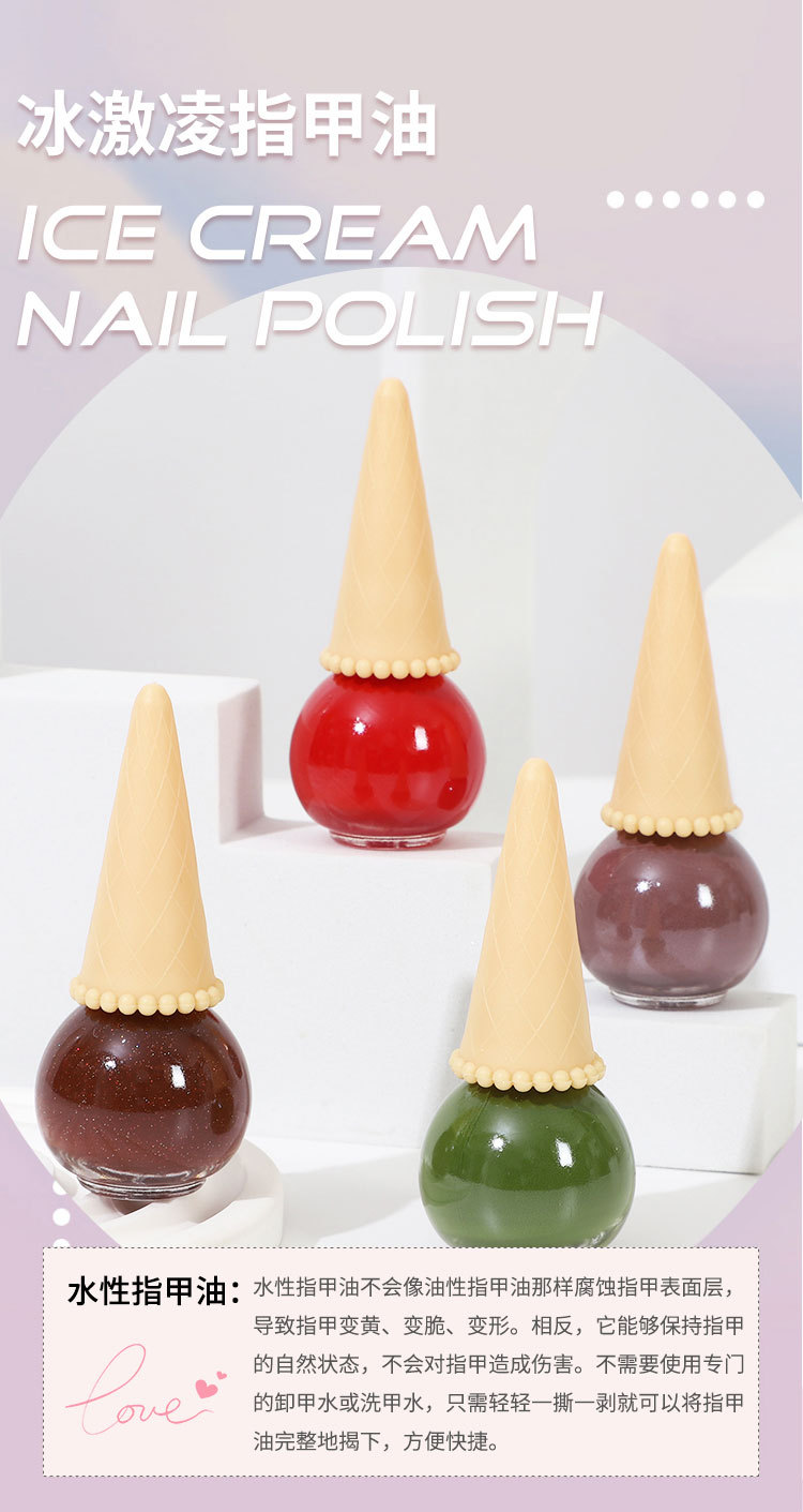 Детский лак для ногтей с водной основой, кросс-бордерный, индивидуальный дизайн, в виде бутылочки мороженого, рвется, без запаха, конфетные цвета, не требует сушки