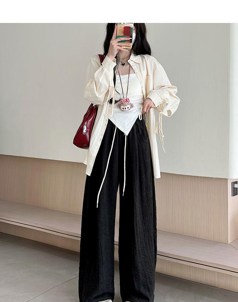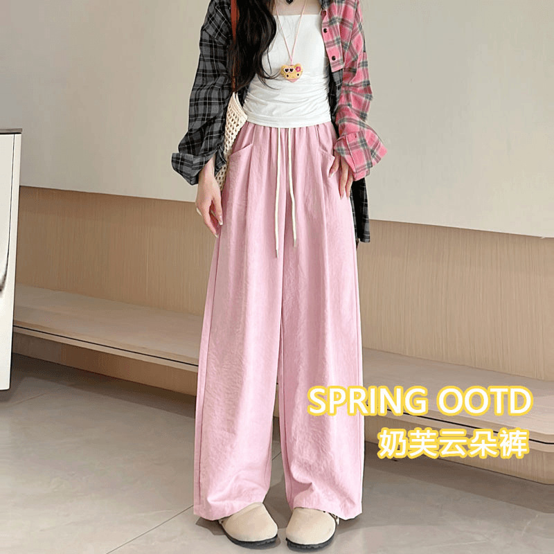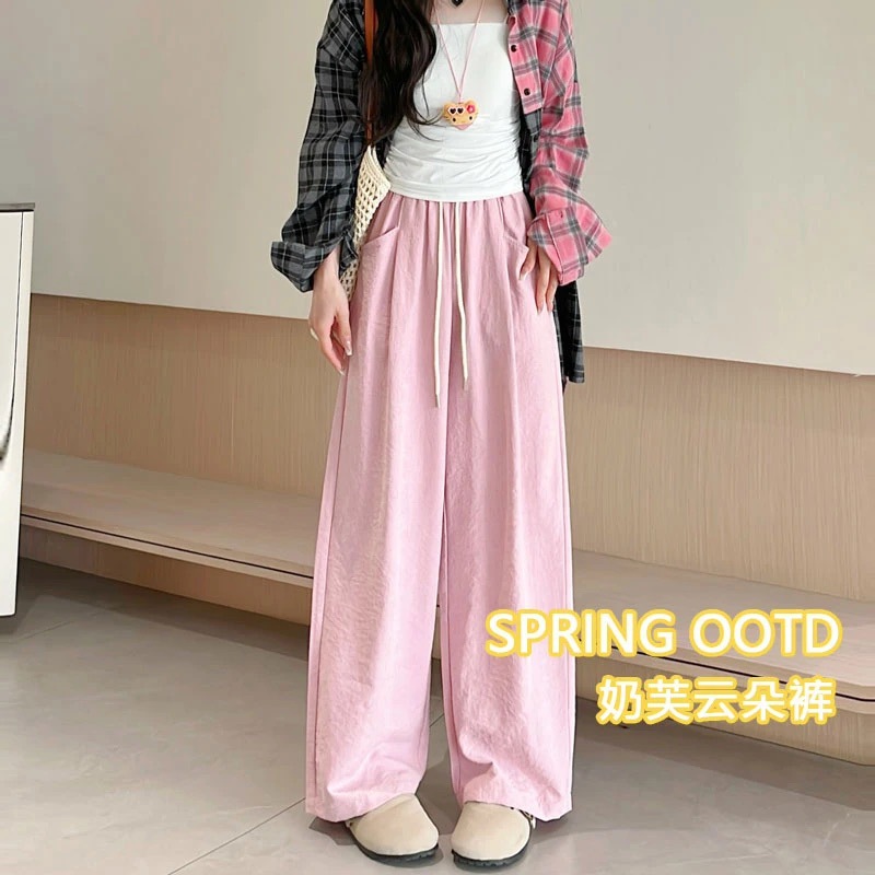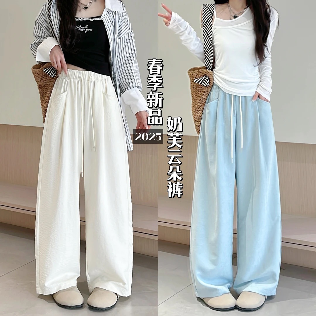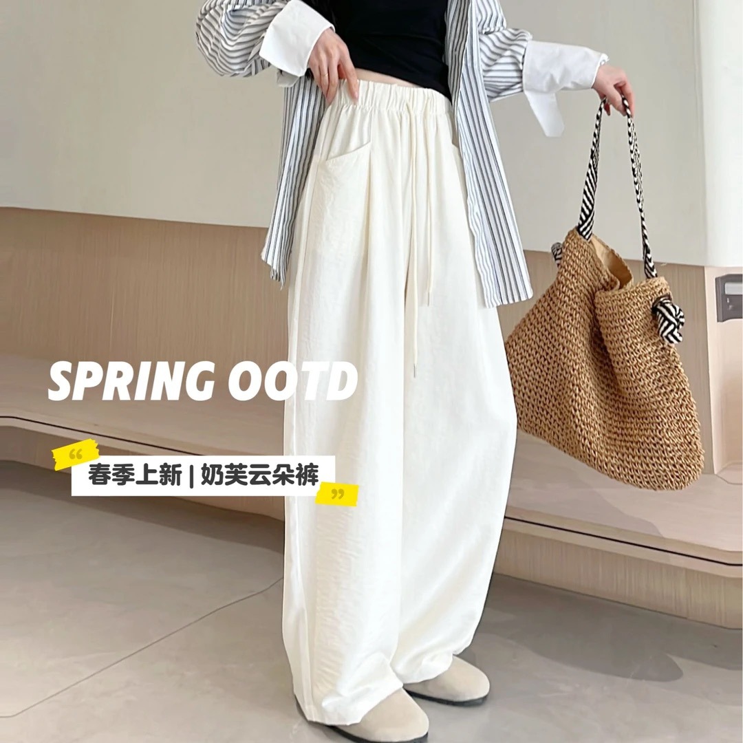 Облачные брюки с ацетатным молоком женские летние новые свободные с высокой талией, широкие ноги, ятаган, повседневные прямые штаны Yamamobo