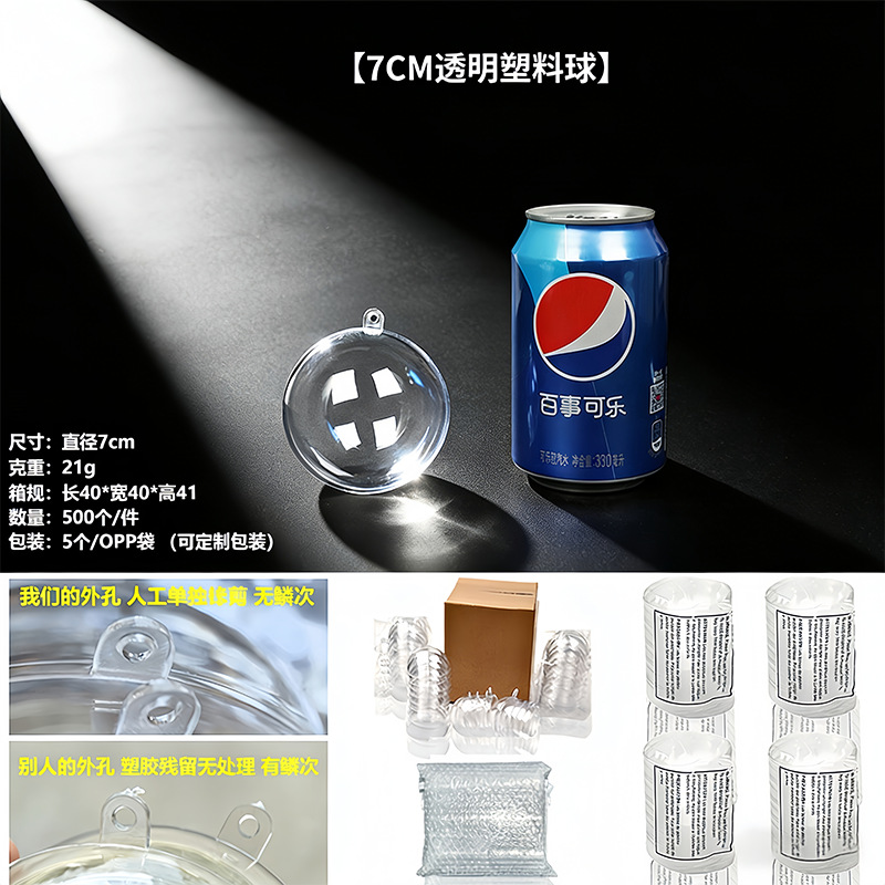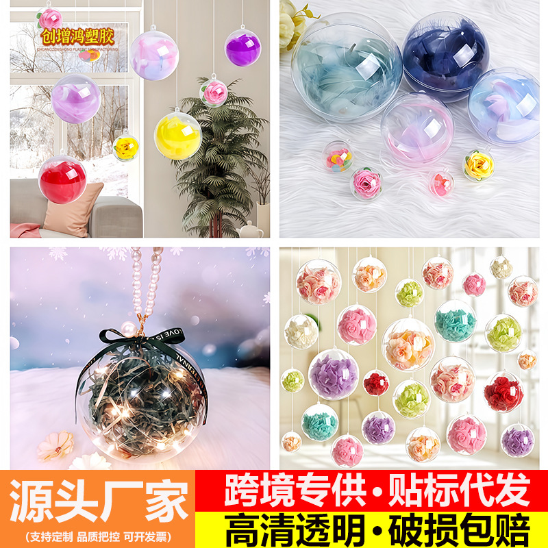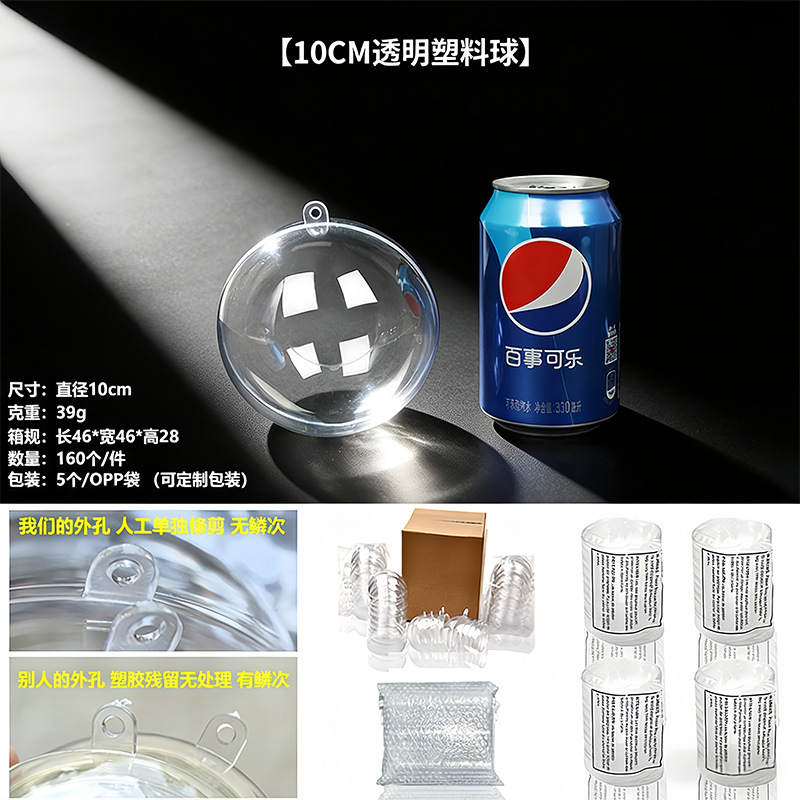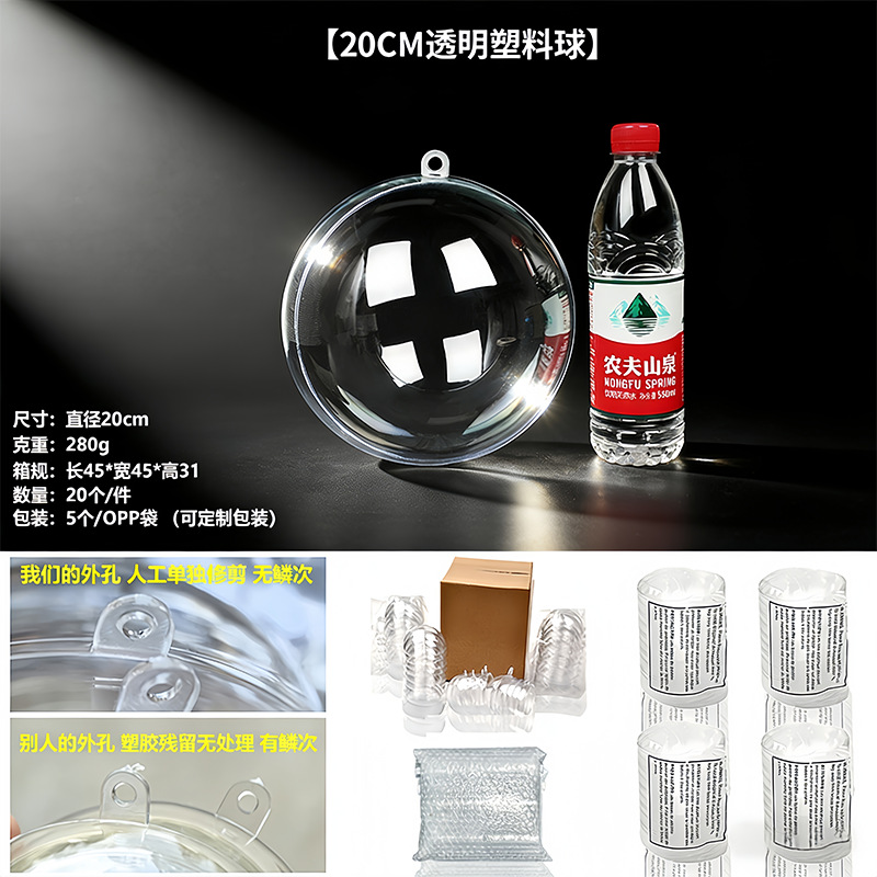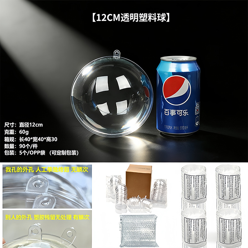 Прозрачный шар, акриловый шар, полый шар с подвесным отверстием, Рождественский шар, Рождественский декоративный шар, PS, высокопрозрачный пластиковый шар