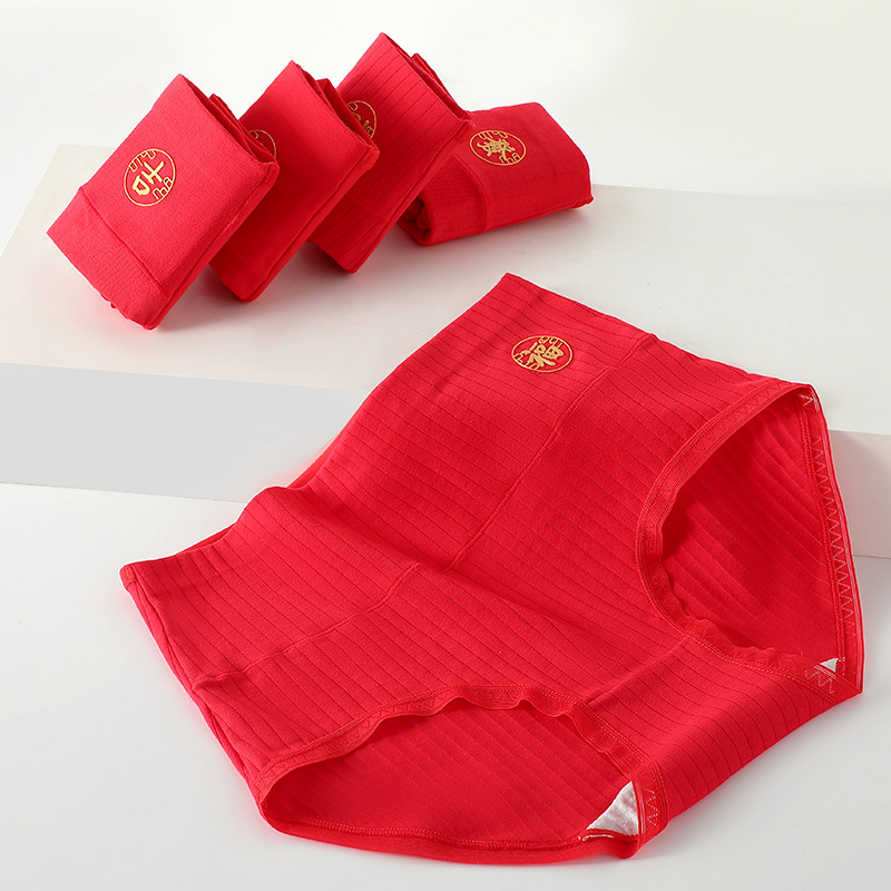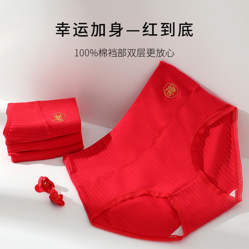 Красное нижнее белье для женщин в год знака зодиака, категория А, чистый хлопок, антибактериальное, женские шорты-треуголки, новогодние свадебные брюки для девочек.