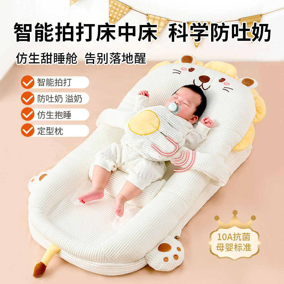 Новорожденный ребенок предотвращает рвоту, наклонная кровать, переполнение, молоко, дышащая подушка, ребенок лежит, кормит, артефакт, кровать, бионическая кровать