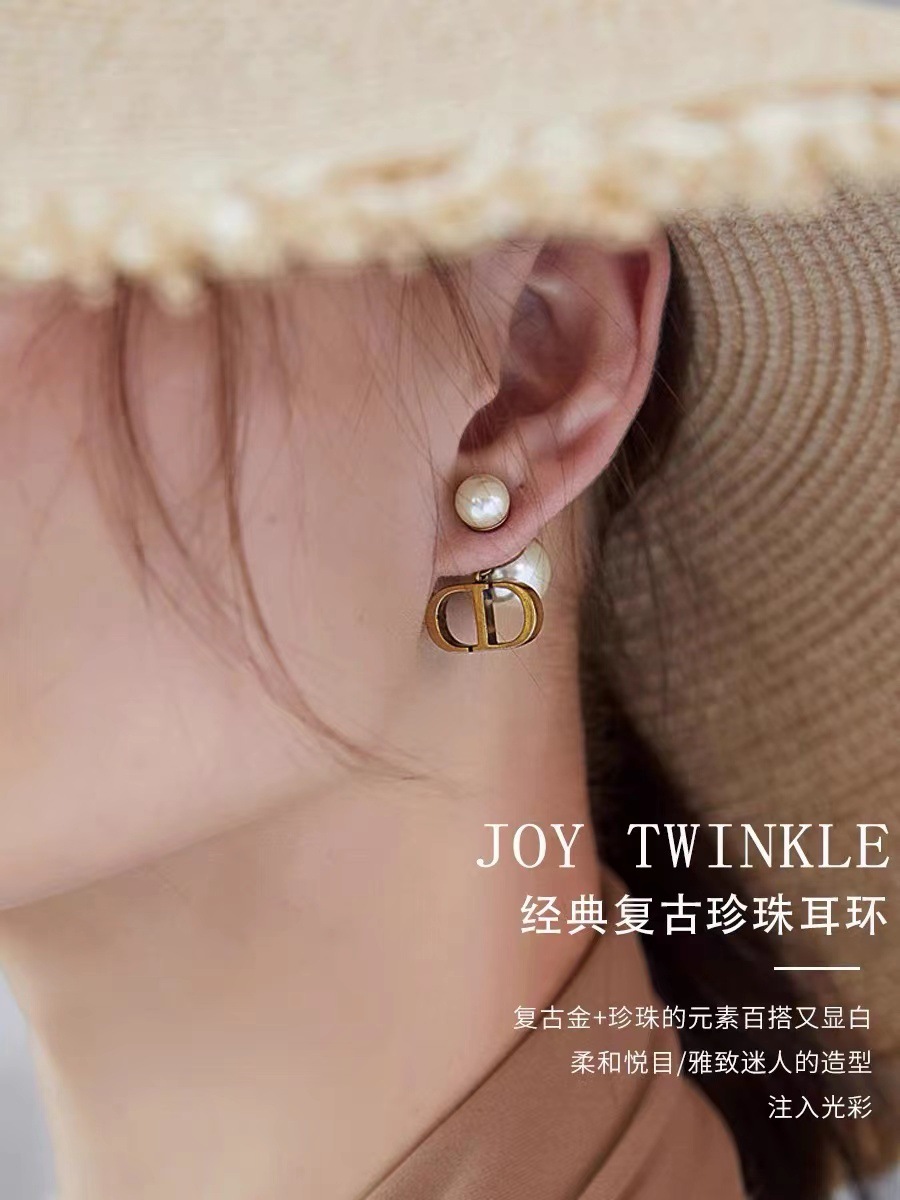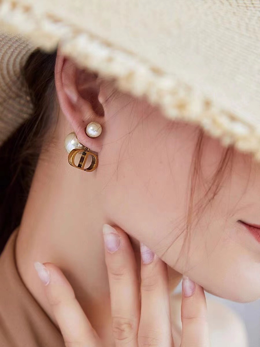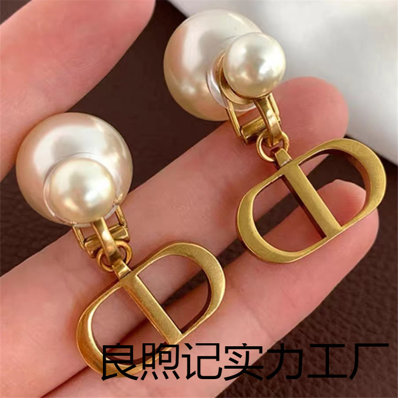 Серьги с жемчугом CD; Зажим для ушей с жемчугом CD; Двусторонний зажим для ушей с жемчугом