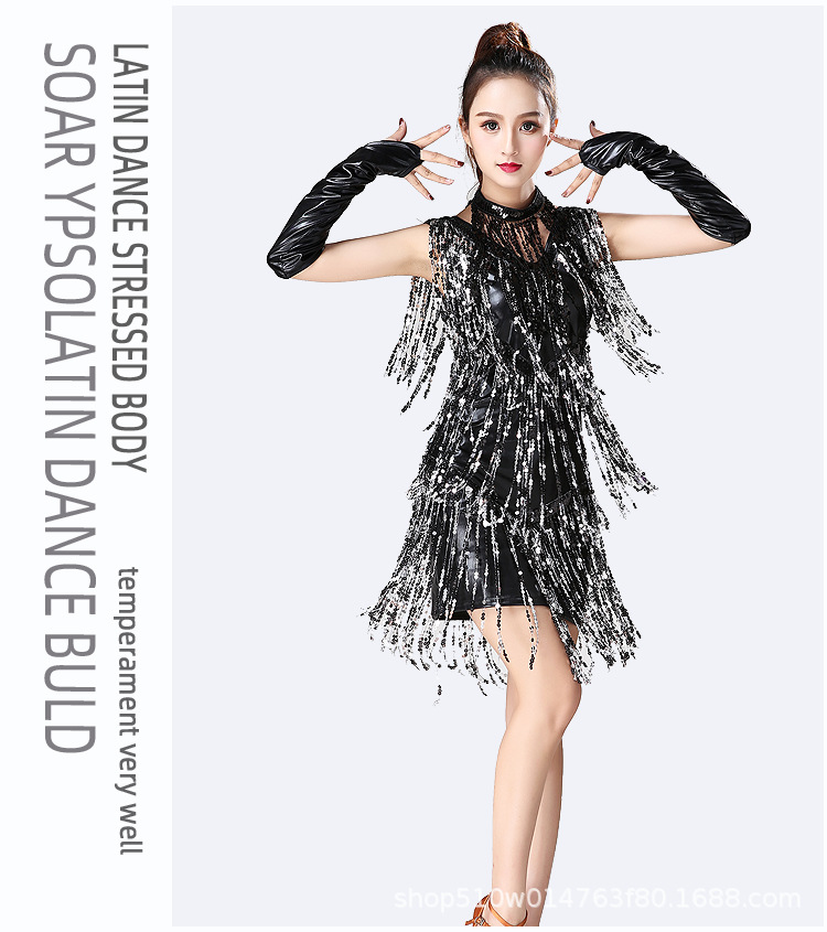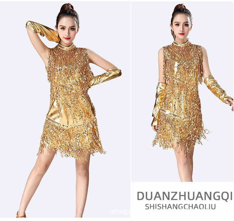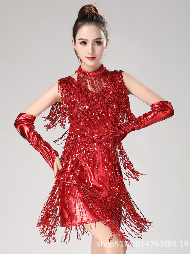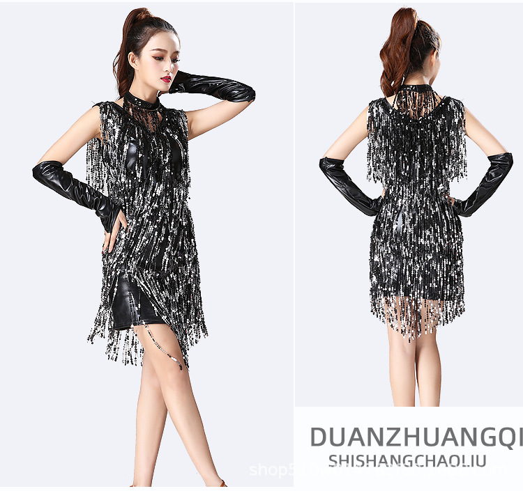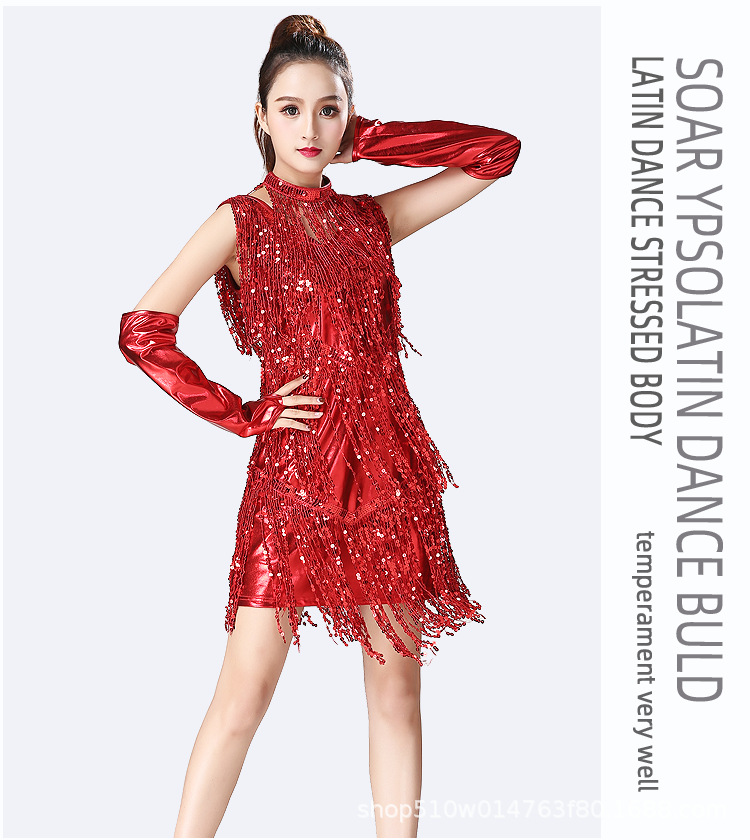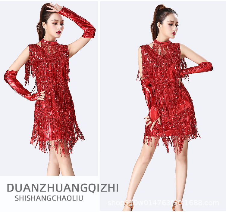 Танцевальное платье Erlzi с пайетками и бахромой для латиноамериканских танцев, сценический костюм для взрослых женщин, бальное платье для соревнований, костюм для выступлений, танцевальное платье с пайетками