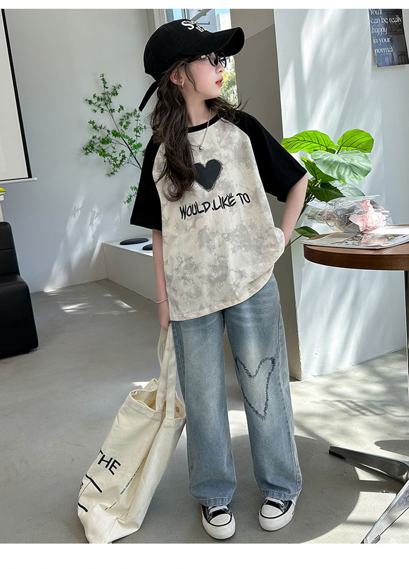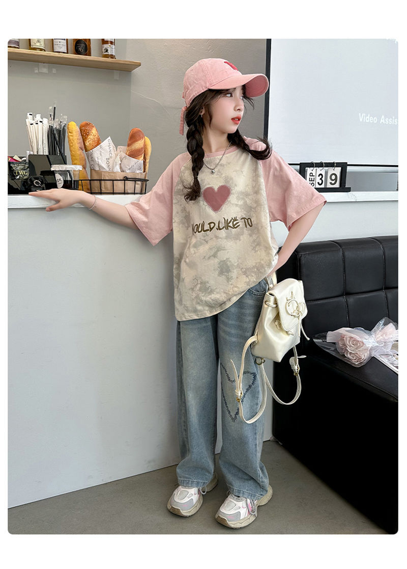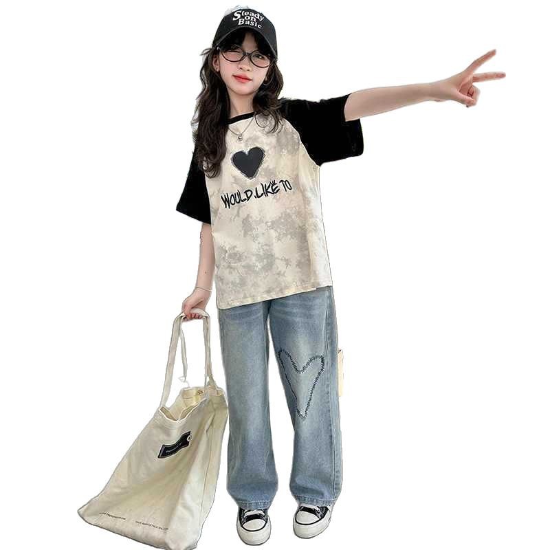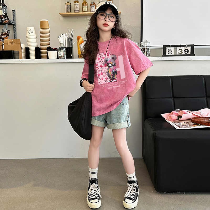 Футболка с короткими рукавами для девочек Хлопковое летнее платье для студентов