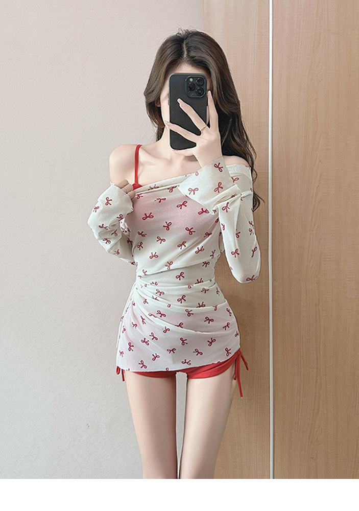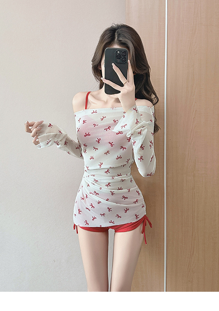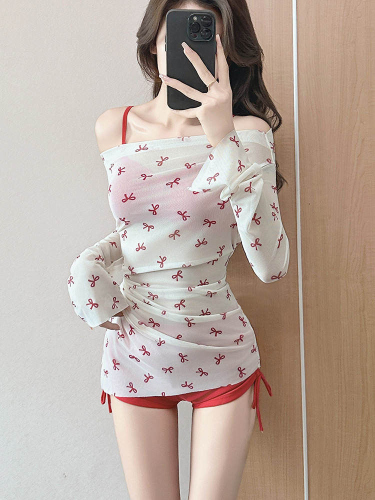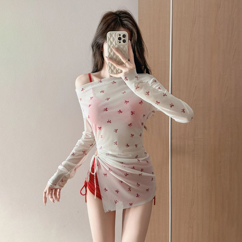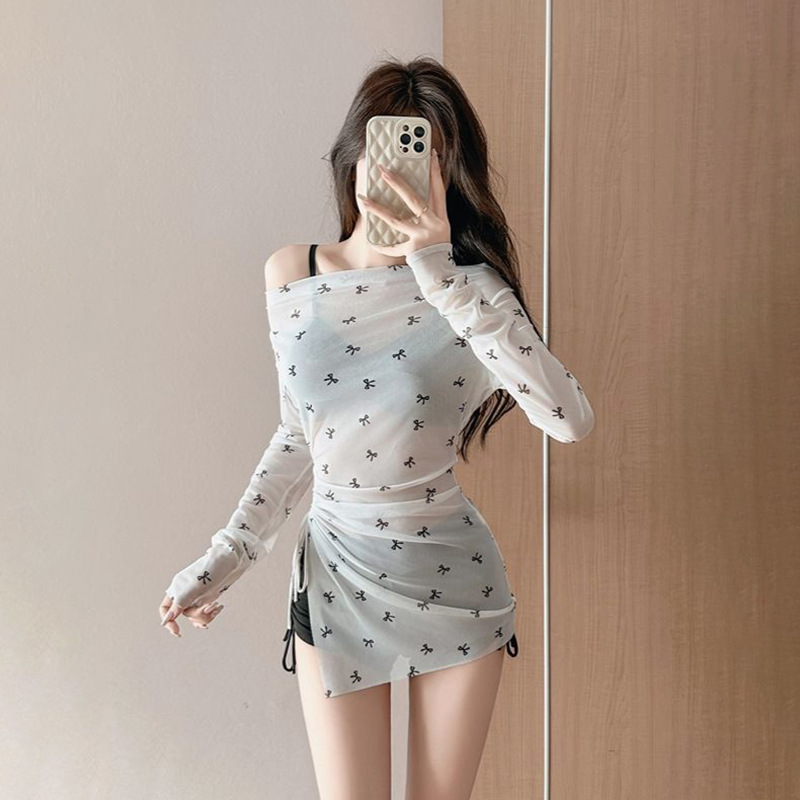 Новый купальник женский костюм из трех частей бичини купальник девушка чувствует себя чистым ветром бант с длинными рукавами солнцезащитный горячий источник