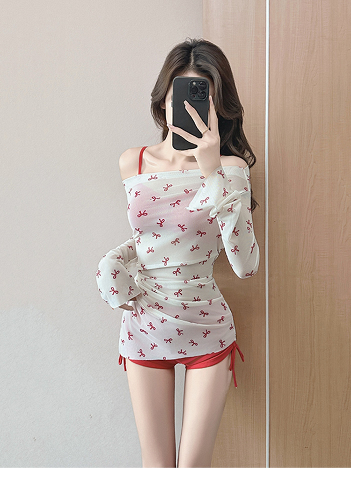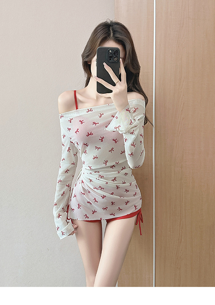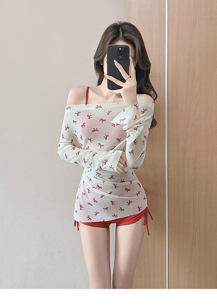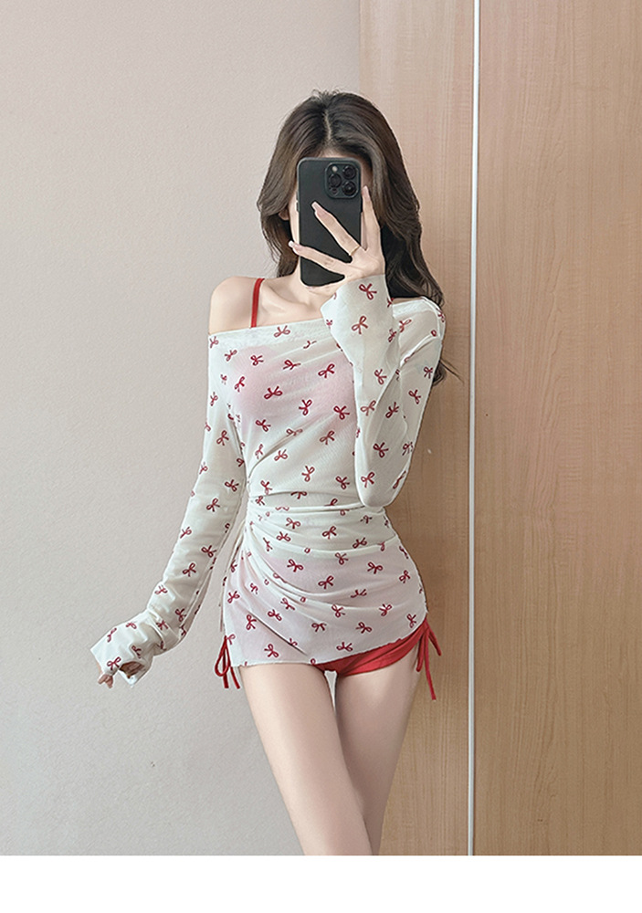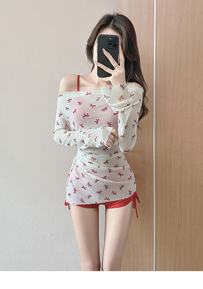 Новый купальник женский костюм из трех частей бичини купальник девушка чувствует себя чистым ветром бант с длинными рукавами солнцезащитный горячий источник