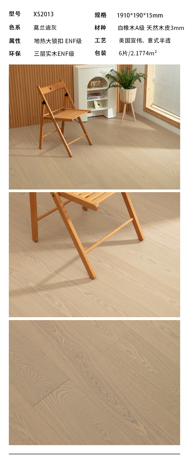 Трехслойный паркет из массива дерева, белый дуб, для спальни, серия цветов Моранди, класс ENF, самоклеящийся паркет.