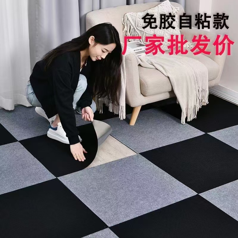 Самоклеящиеся ковровые плитки для офиса, коммерческие напольные покрытия с полным покрытием, прямая укладка ковровых покрытий на цементные полы больших площадей.