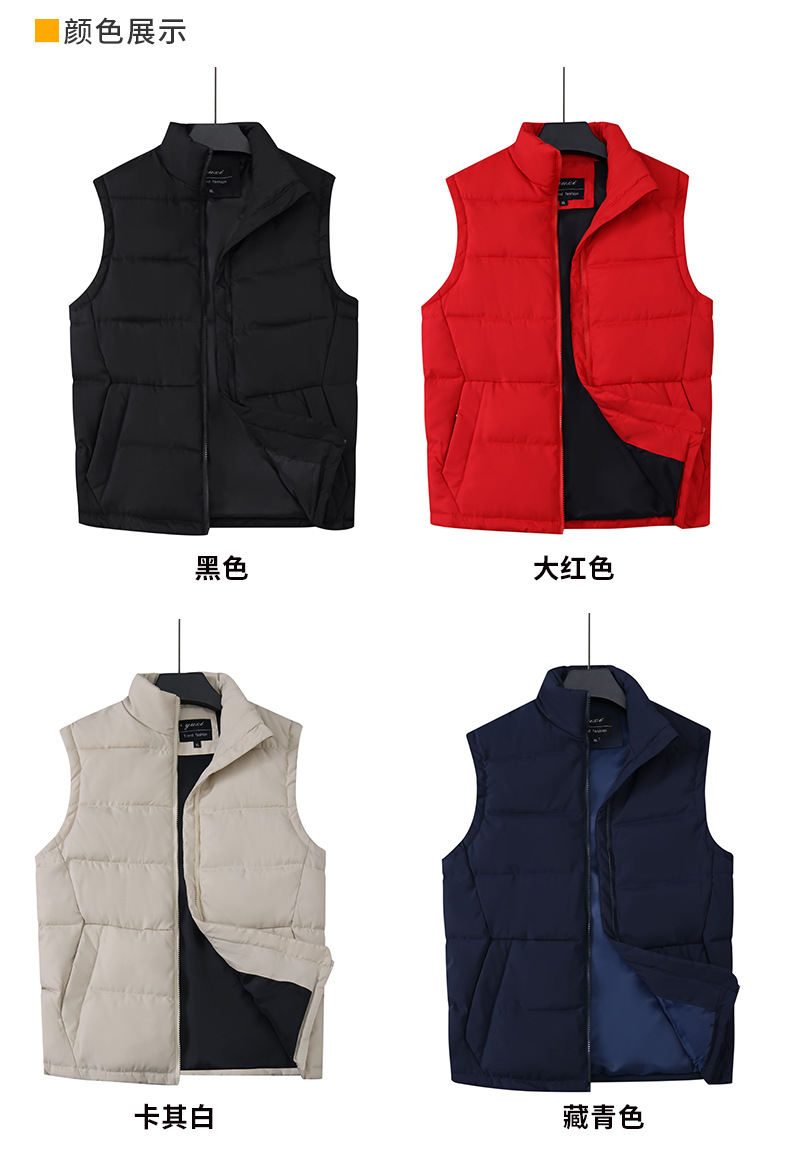 Шелковый жилет с защитой от брызг темно-синий; Шелковый жилет с защитой от брызг ярко-красный; Шелковый жилет с защитой от брызг черный; Шелковый жилет с защитой от брызг, белый цвет хаки; Пуховый хлопковый жилет темно-синий; Пуховый хлопковый жилет черный; Пуховый хлопковый жилет красный; Пуховый хлопковый жилет серый; Пуховый хлопковый жилет оранжевый