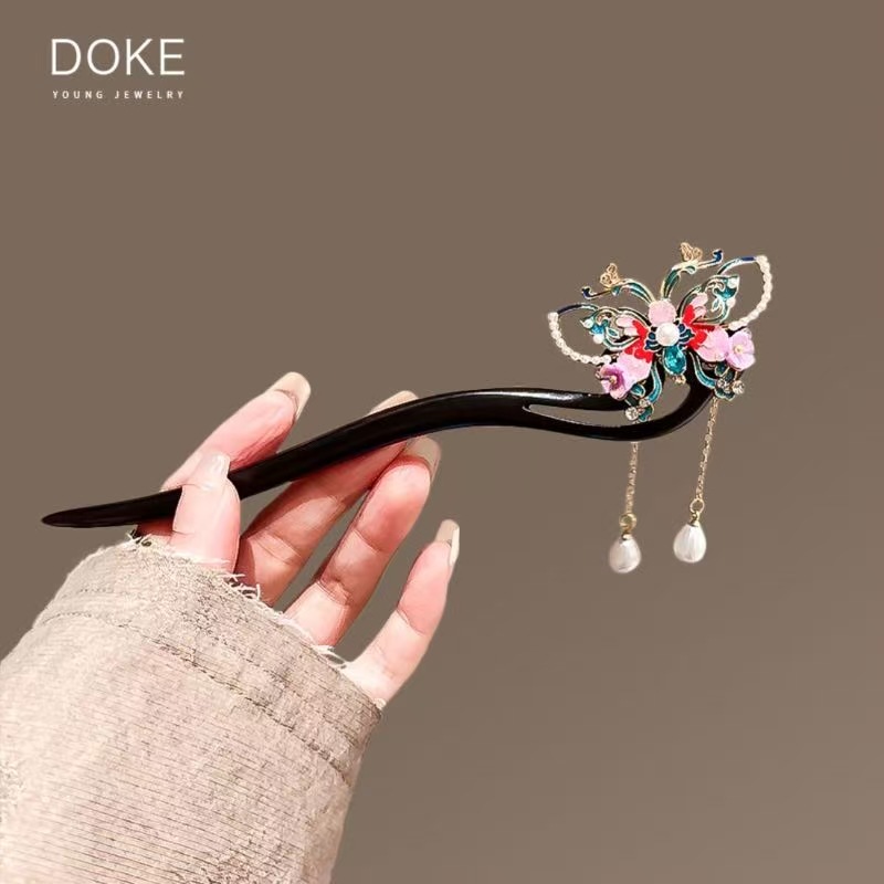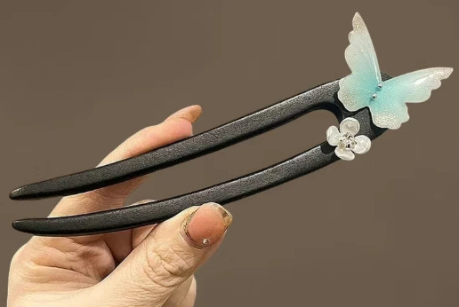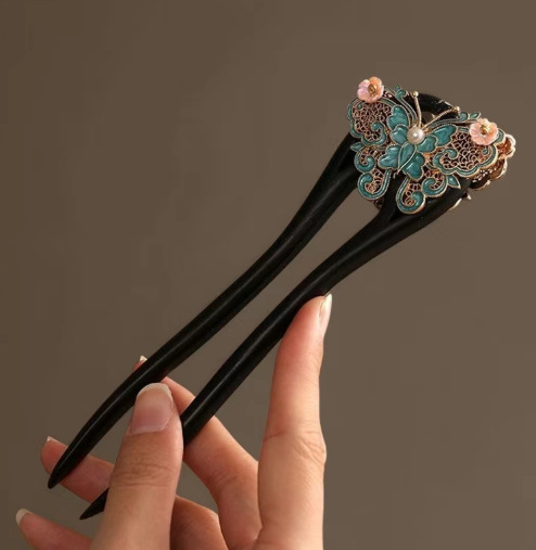Шпилька высокого класса, деревянная шпилька U-образная заколка для волос, женская заколка для волос с цветком и бабочкой, древний стиль, ювелирная заколка в стиле хань династии, Cheongsam, прическа, ювелирные изделия