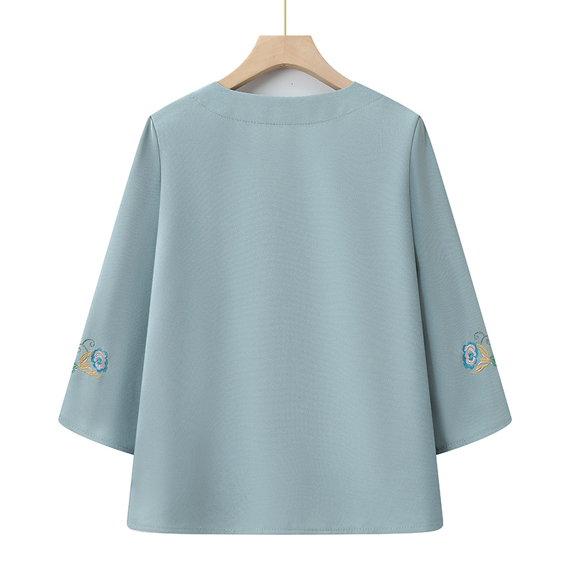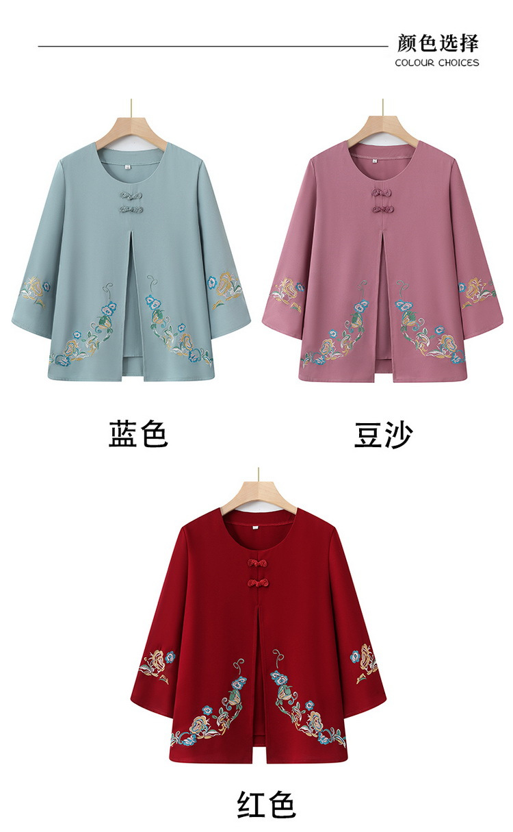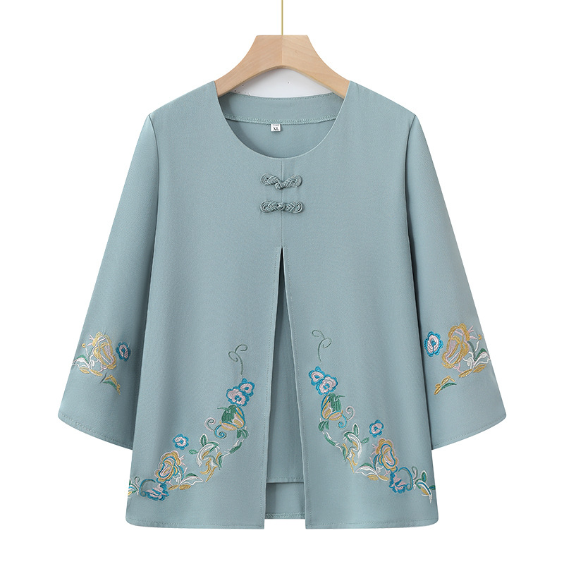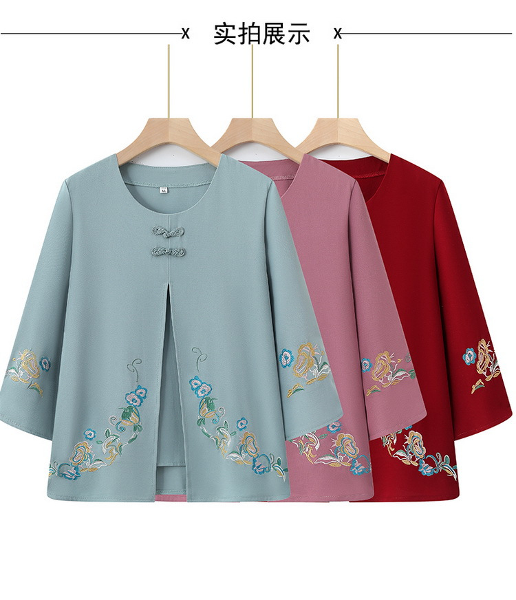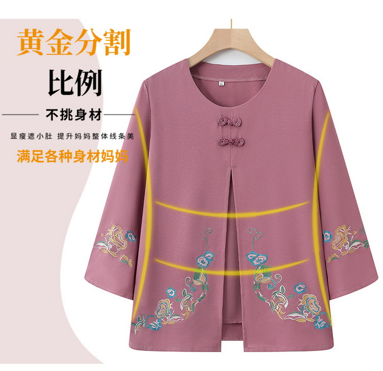 Среднего и пожилого возраста 2025 новый весенний и осенний топ свободная бабушка с девятью рукавами маленькая рубашка средней и пожилой женщины поддельные две части