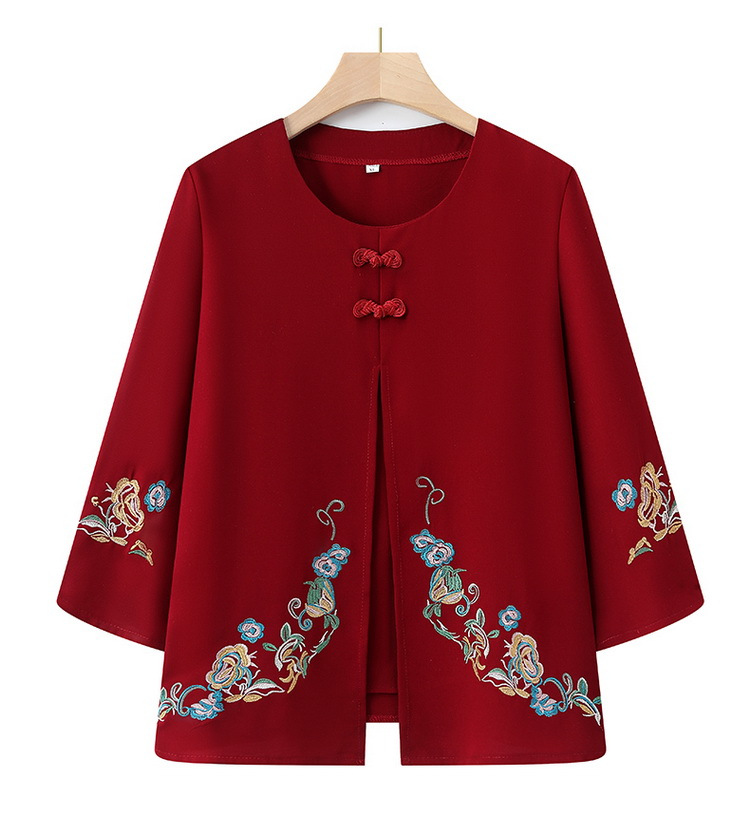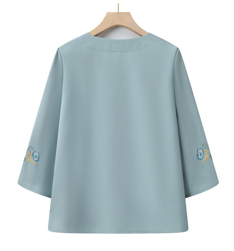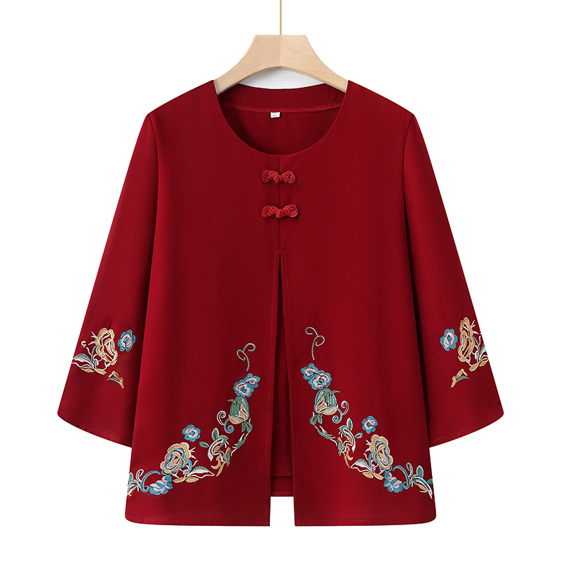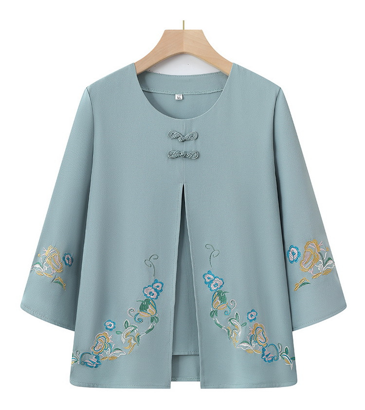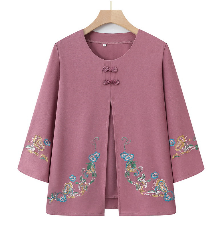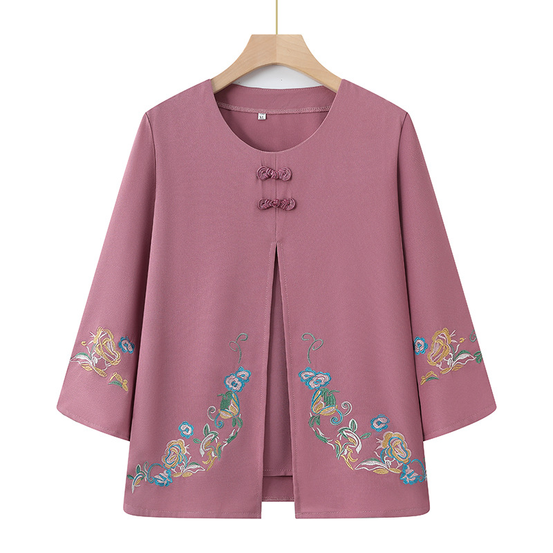 Среднего и пожилого возраста 2025 новый весенний и осенний топ свободная бабушка с девятью рукавами маленькая рубашка средней и пожилой женщины поддельные две части
