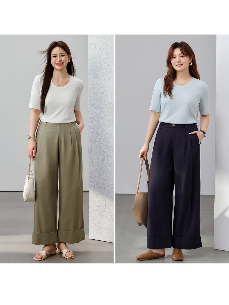 [Прямая труба свободная и вертикальная, тонкая и складная штаны] Felly Show большой размер женский толстый mm2025 летний новый