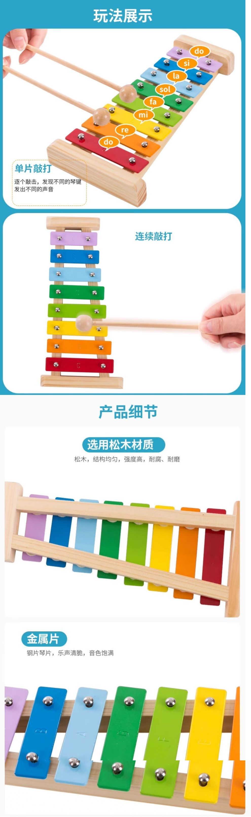 Деревянные восьмиугольники Детские стальные стальные стальные ручные стуки ударные инструменты Детские музыкальные развивающие игрушки ксилофон