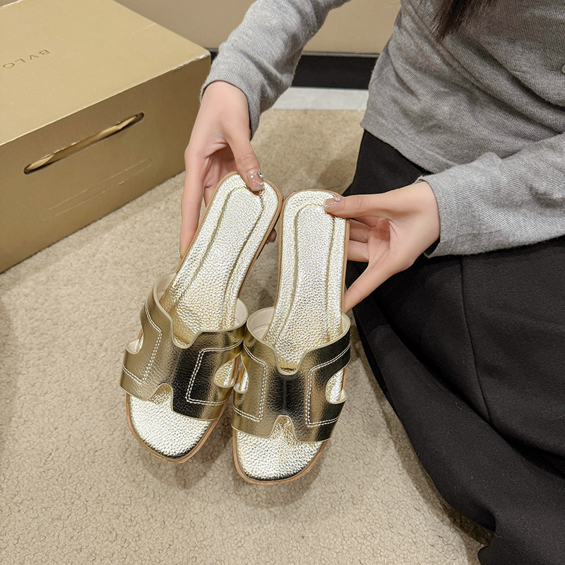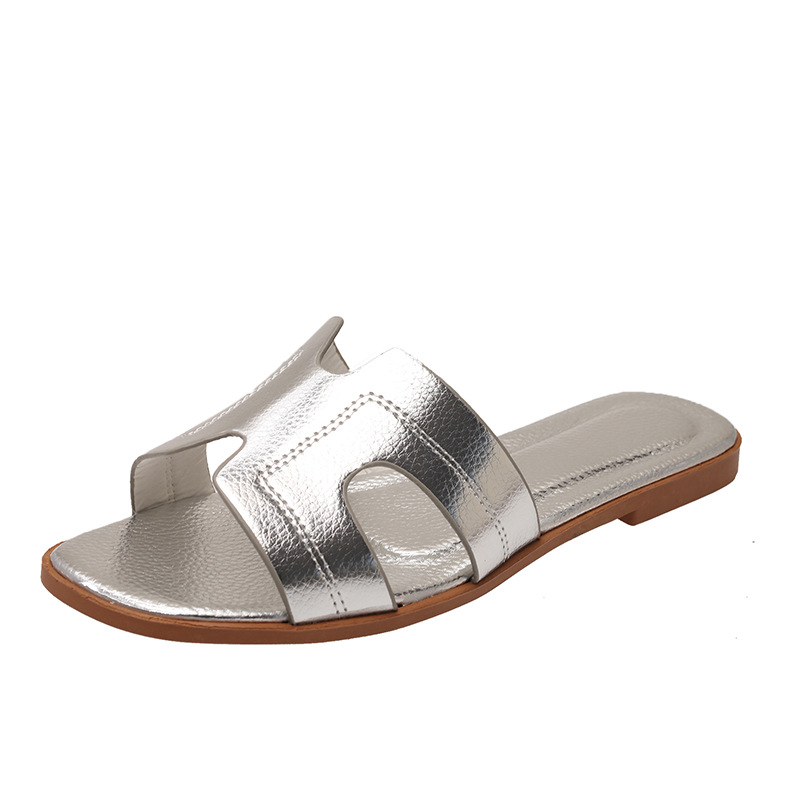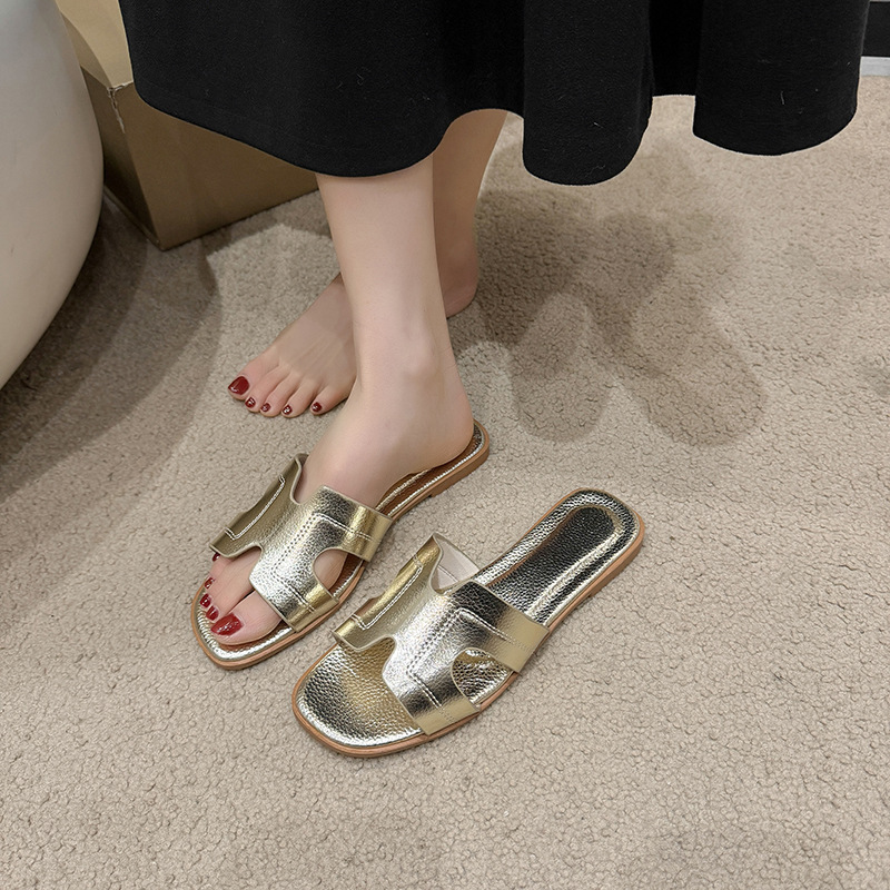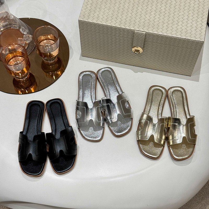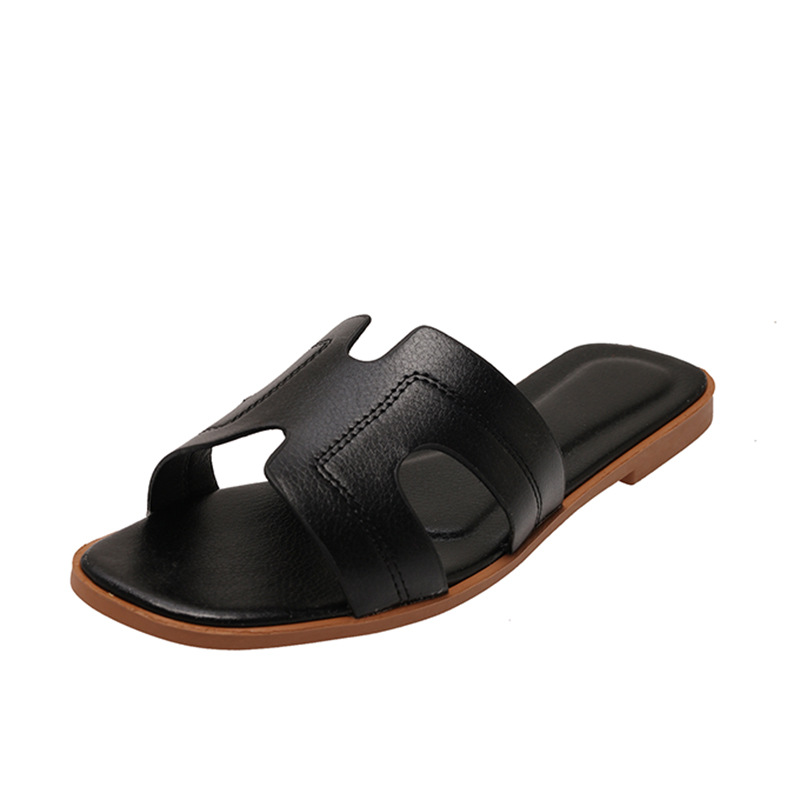 Внешняя торговля горячие тапки женская корейская мода носить сплошные плоские тапочки плоский