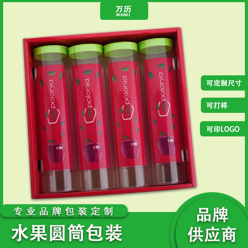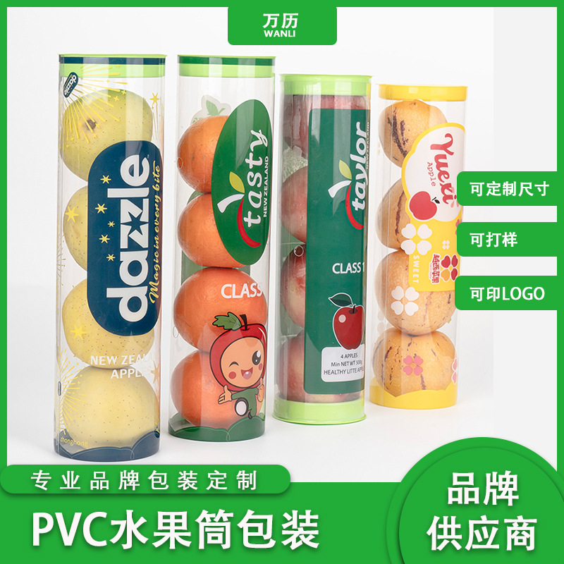 Источник производителя PET экологически чистый прозрачный яблочный цилиндр упаковка пользовательские пластиковые фрукты оранжевая базука упаковочная коробка