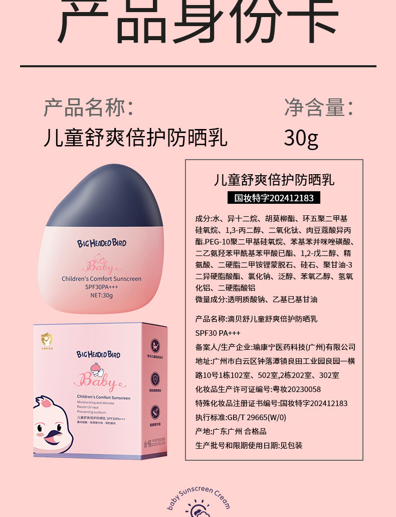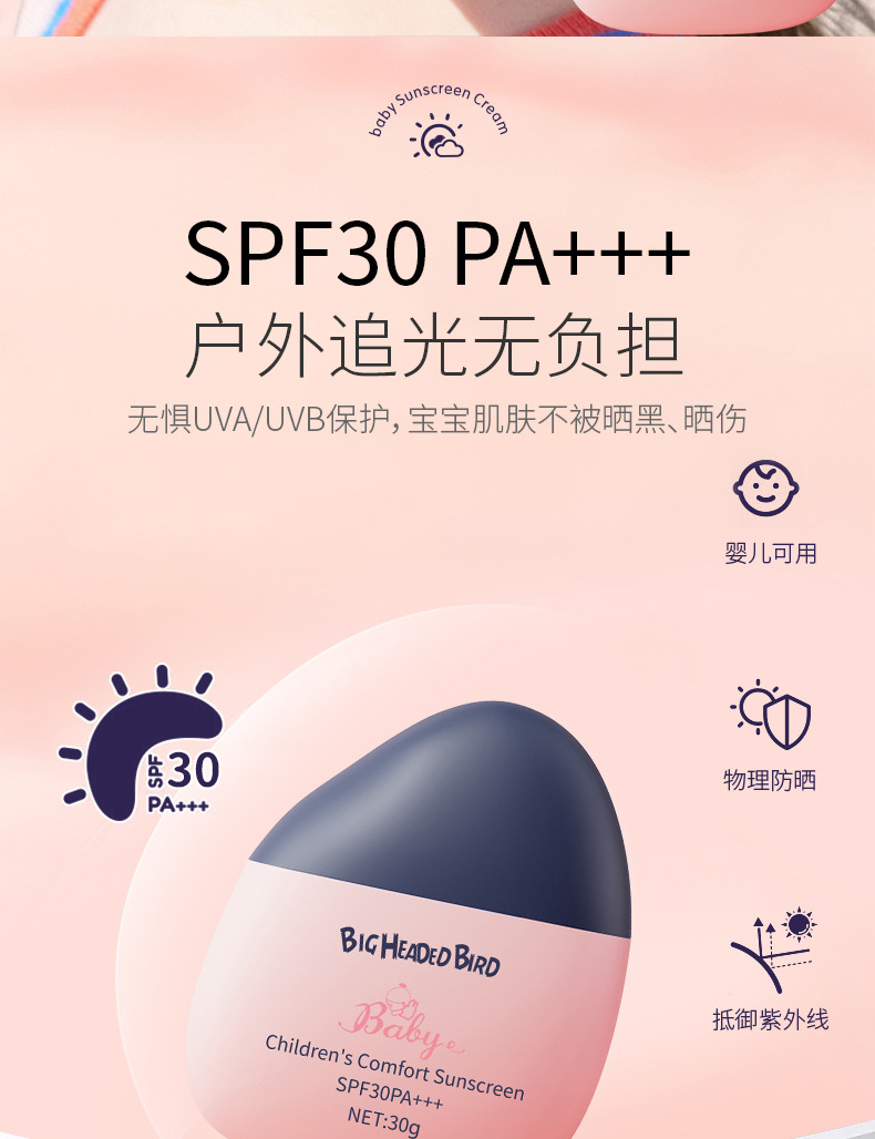 Детский солнцезащитный крем Big Bird SPF30PA+++ Детский солнцезащитный крем Увлажняющий изоляционный анти-УФ Прямые продажи с фабрики