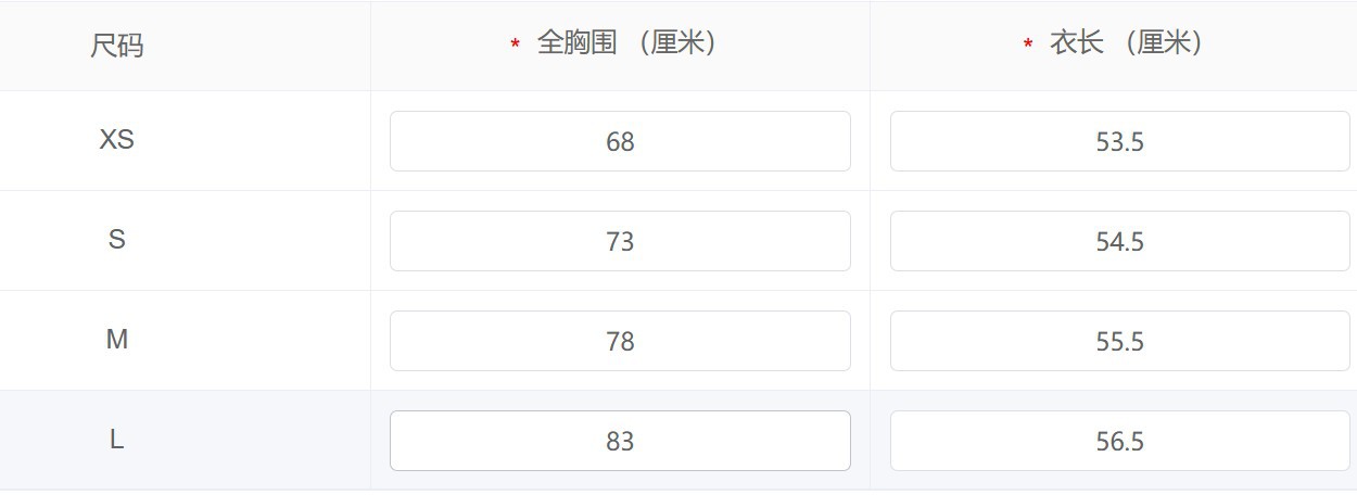 XS; S; M; L