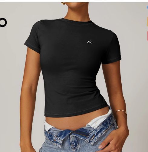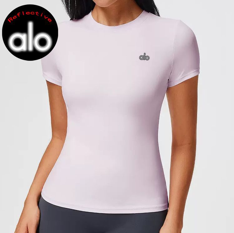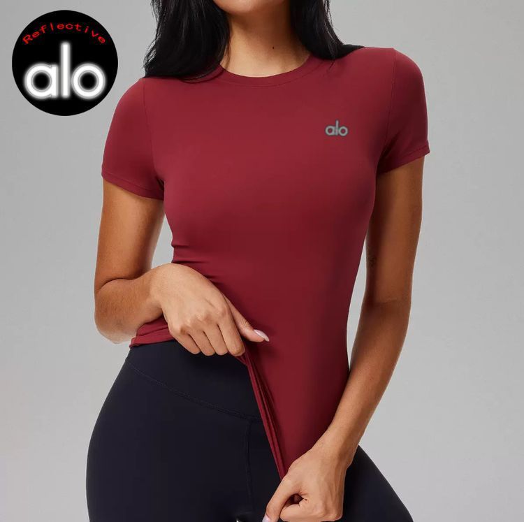 Alo одежда для йоги женский пилатес фитнес-тренировка с короткими рукавами и открытой пупкой облегающей футболке быстрого сушки бег спортивный топ летом