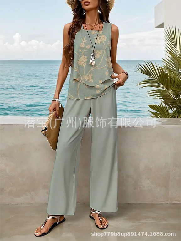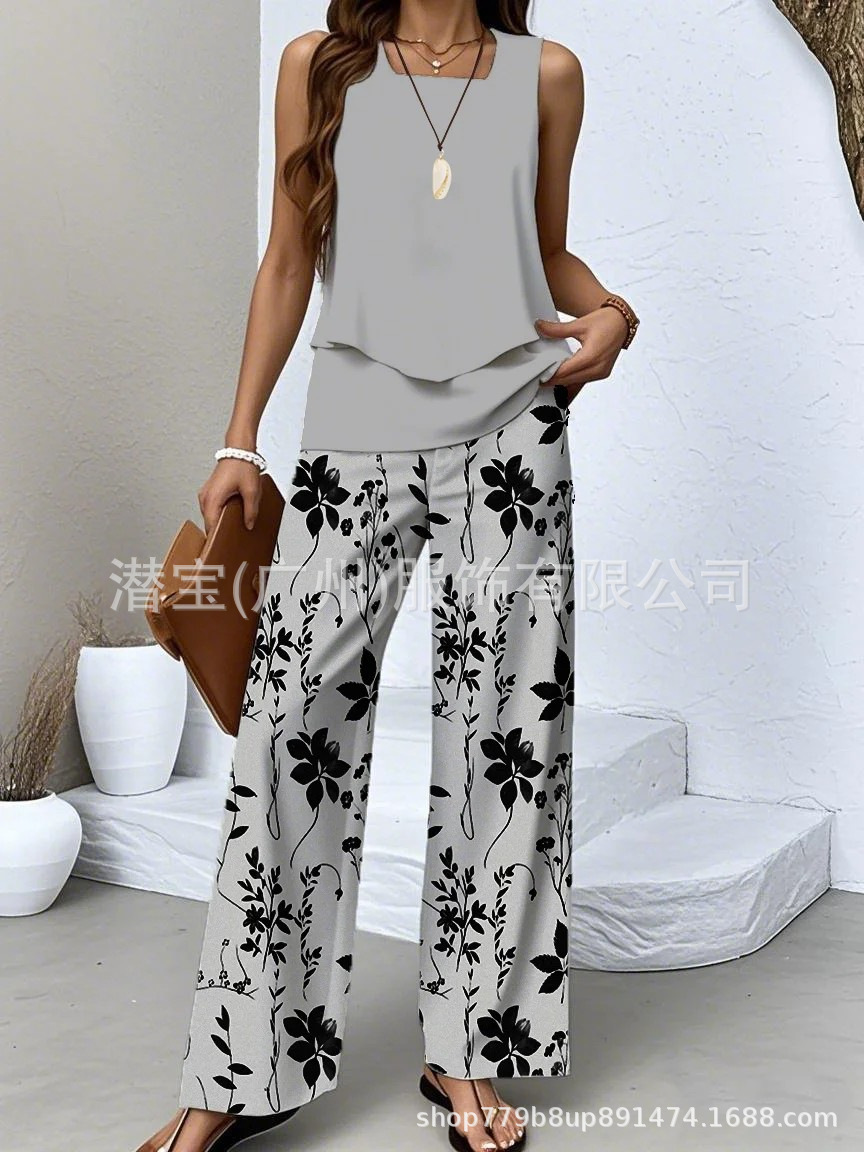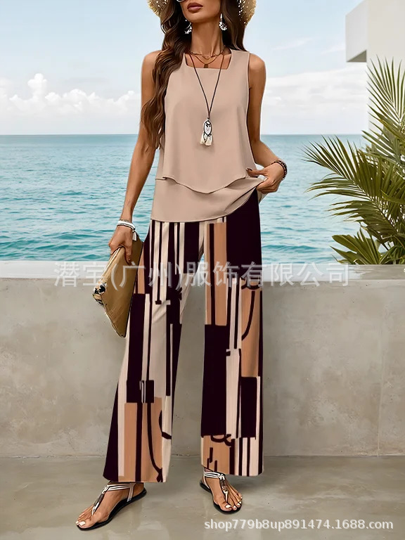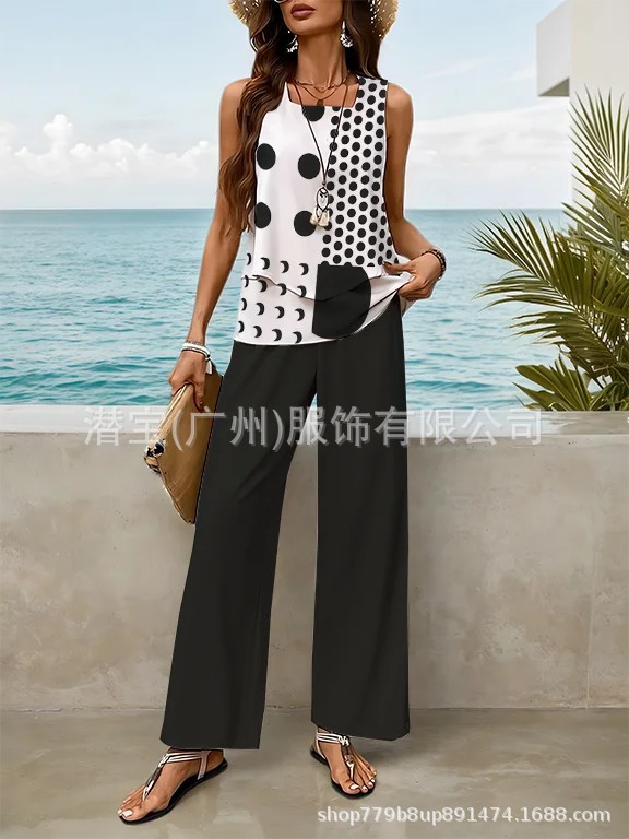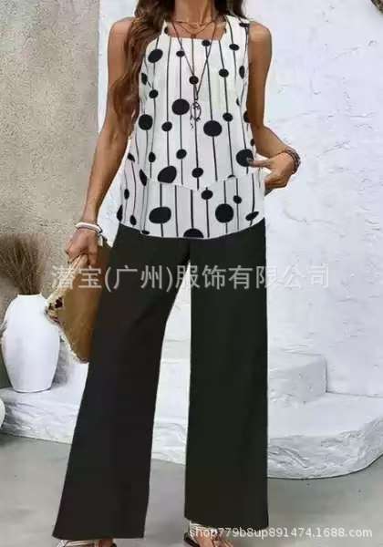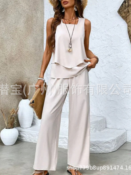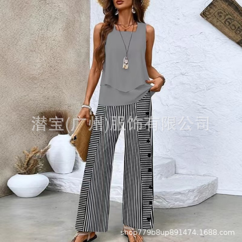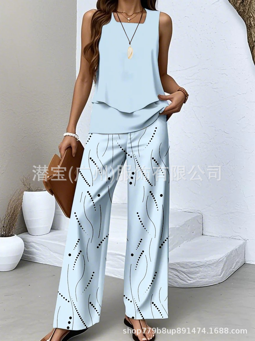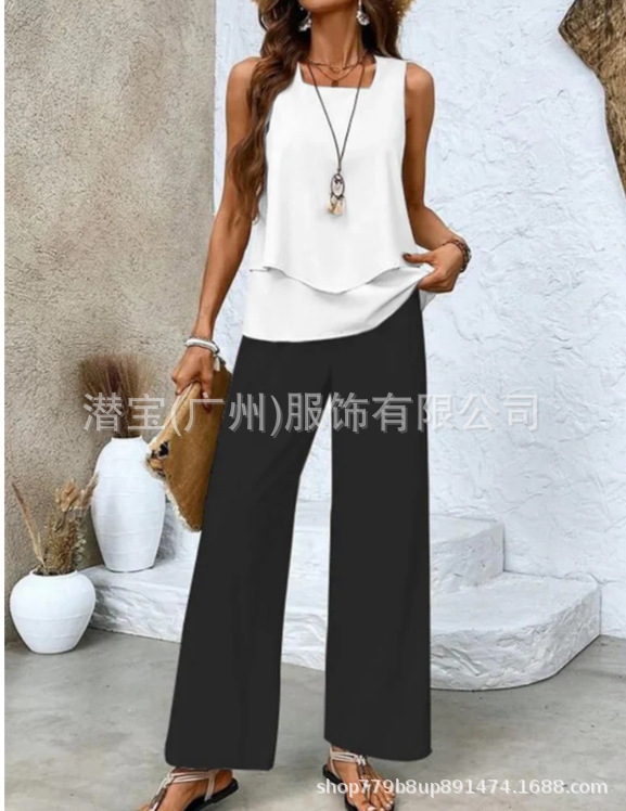 2025 спот новая трансграничная внешняя торговля Европейская и американская женская одежда без рукавов двойной жилет брюки набор из двух частей